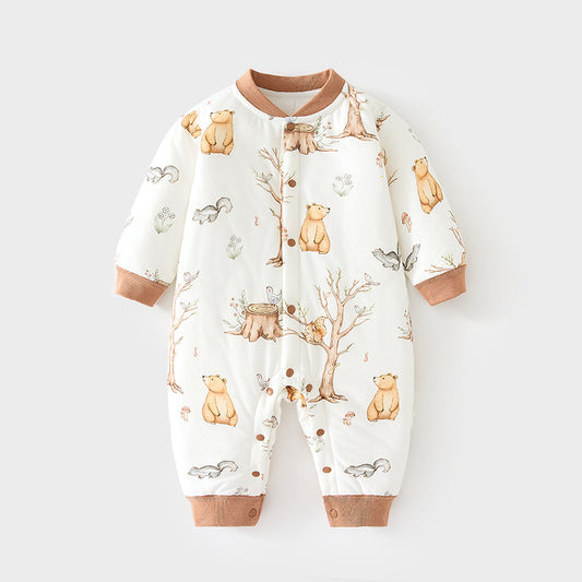 GJ25102125嬰兒40克加棉連身衣寶寶夾棉秋冬無骨哈衣薄棉加厚對開爬服兒童