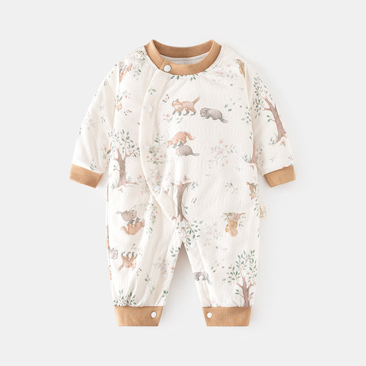 GJ25102119嬰兒加棉連身衣寶寶50克夾棉秋冬無骨哈衣薄棉加厚偏襟爬服兒童