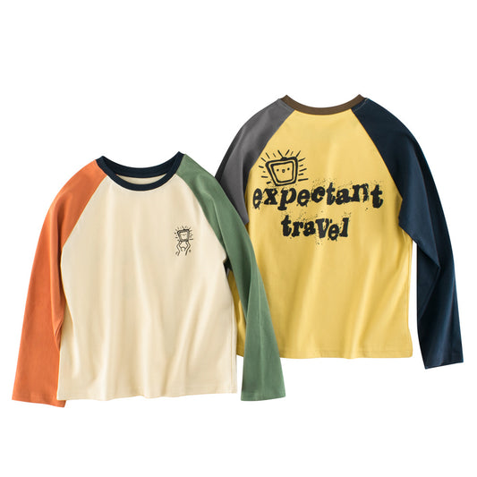 Z25030401春裝新款兒童韓版長袖T恤批發 中大童拼袖卡通打底衫跨國童裝
