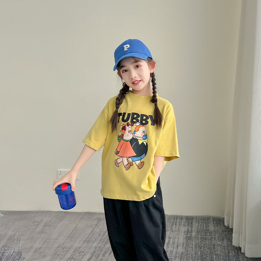 Z25030433女童短袖T恤棉質卡通夏季新款兒童洋氣女孩時尚中大童半袖t上衣