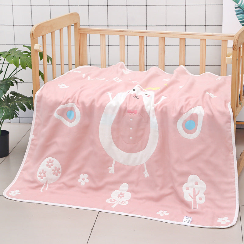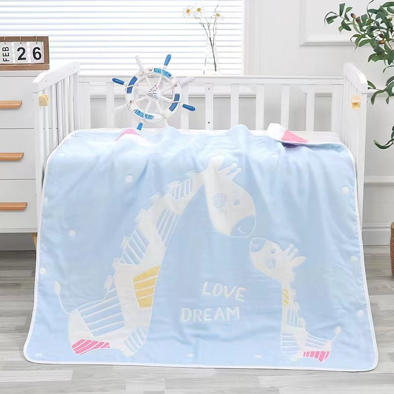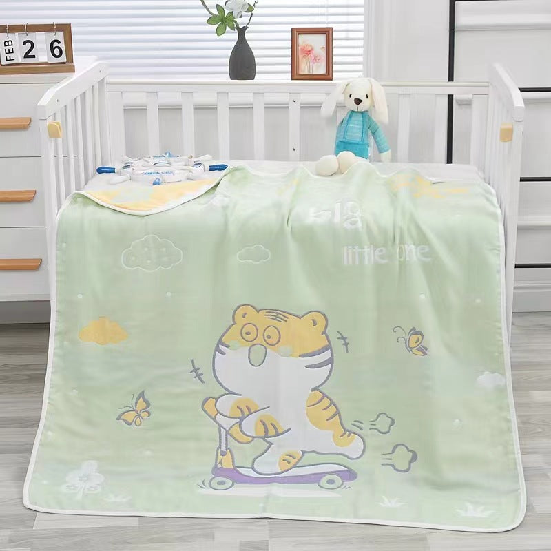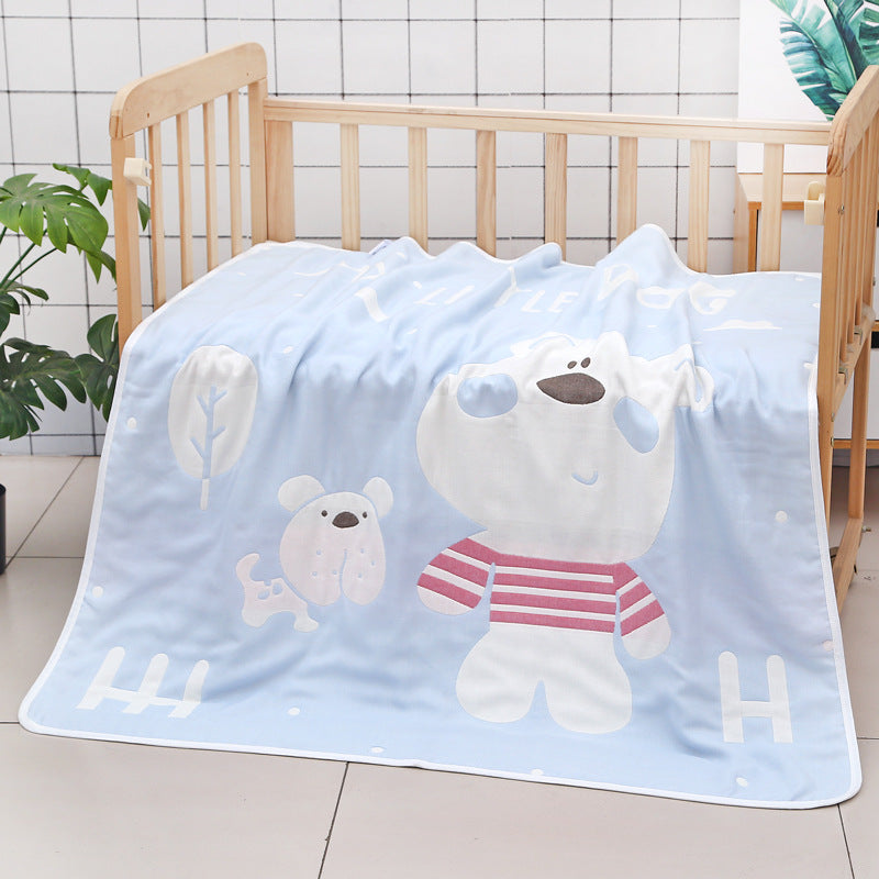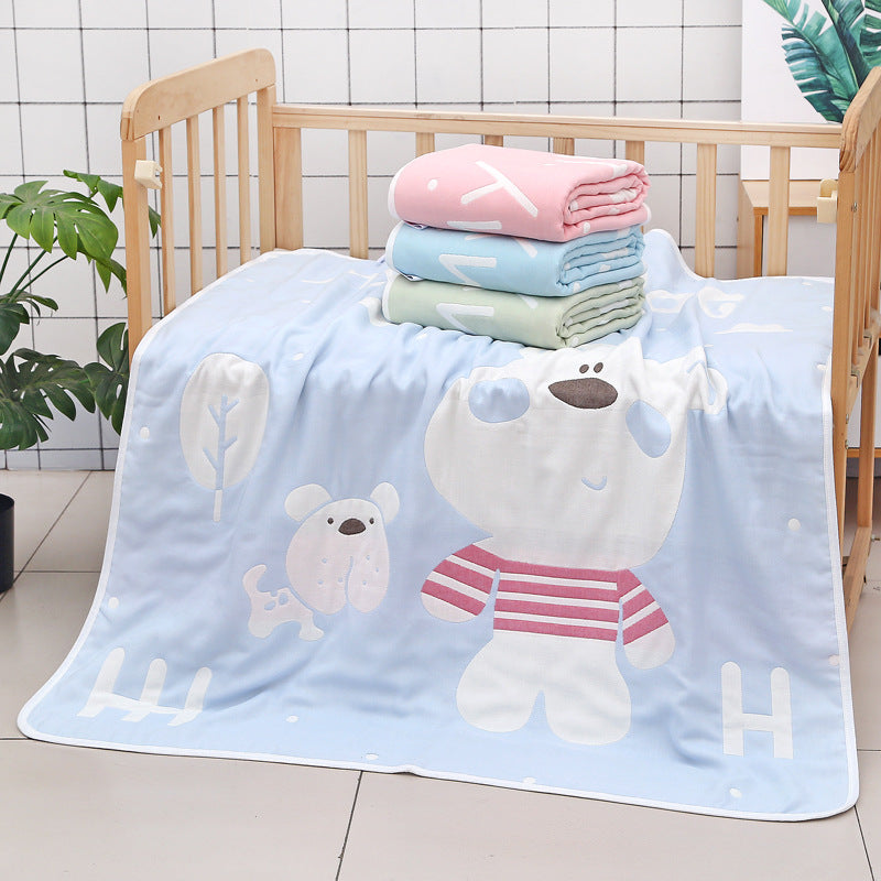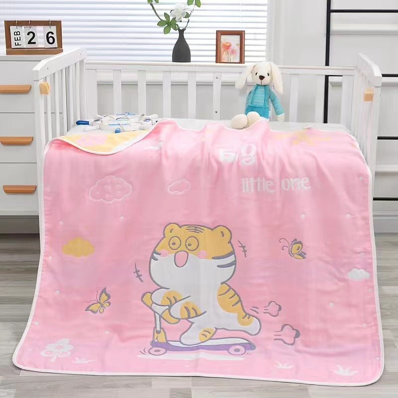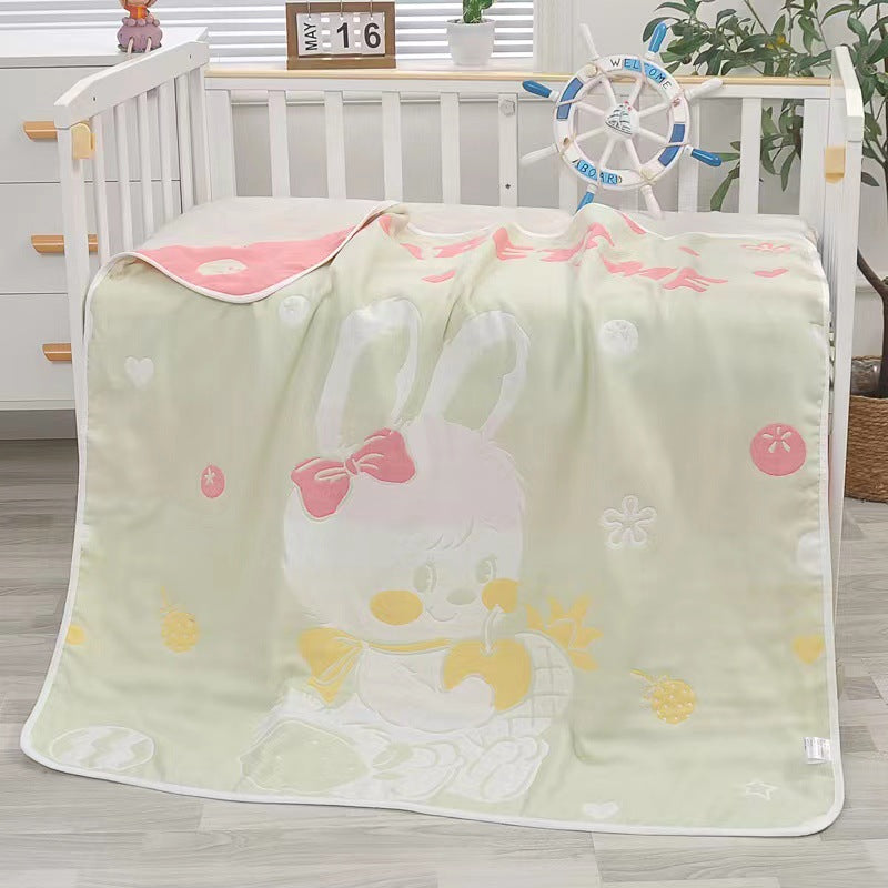 24032310六層棉童被嬰兒浴巾 寶寶卡通紗布提花蓋地毯 幼稚園夏涼被