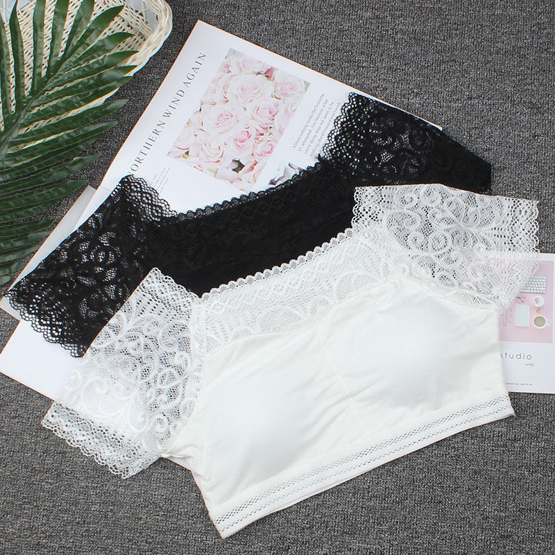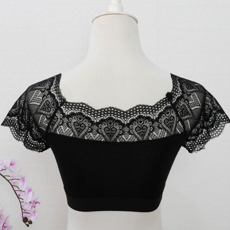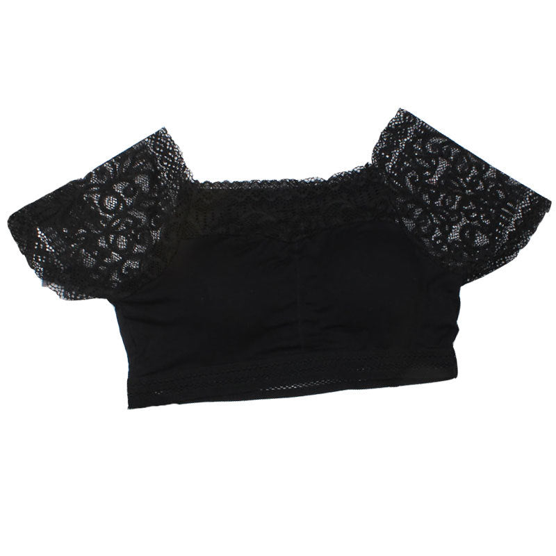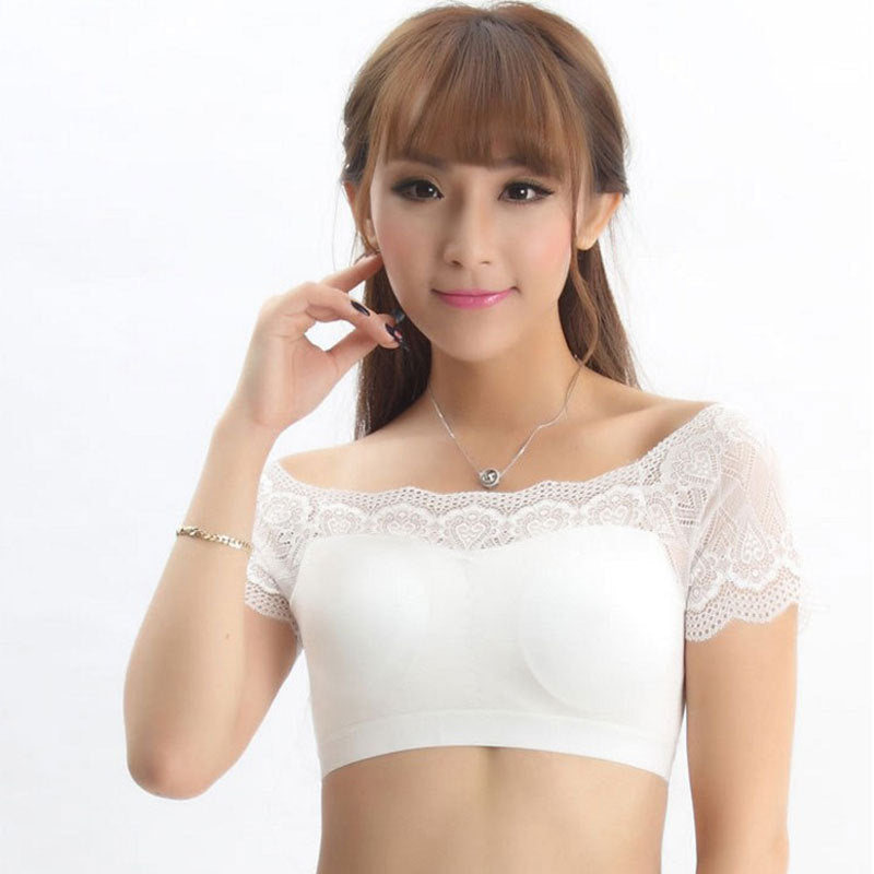 24032311春夏新款防走光帶袖蕾絲抹胸女短袖內搭裹胸抹胸配吊帶裙背心內衣