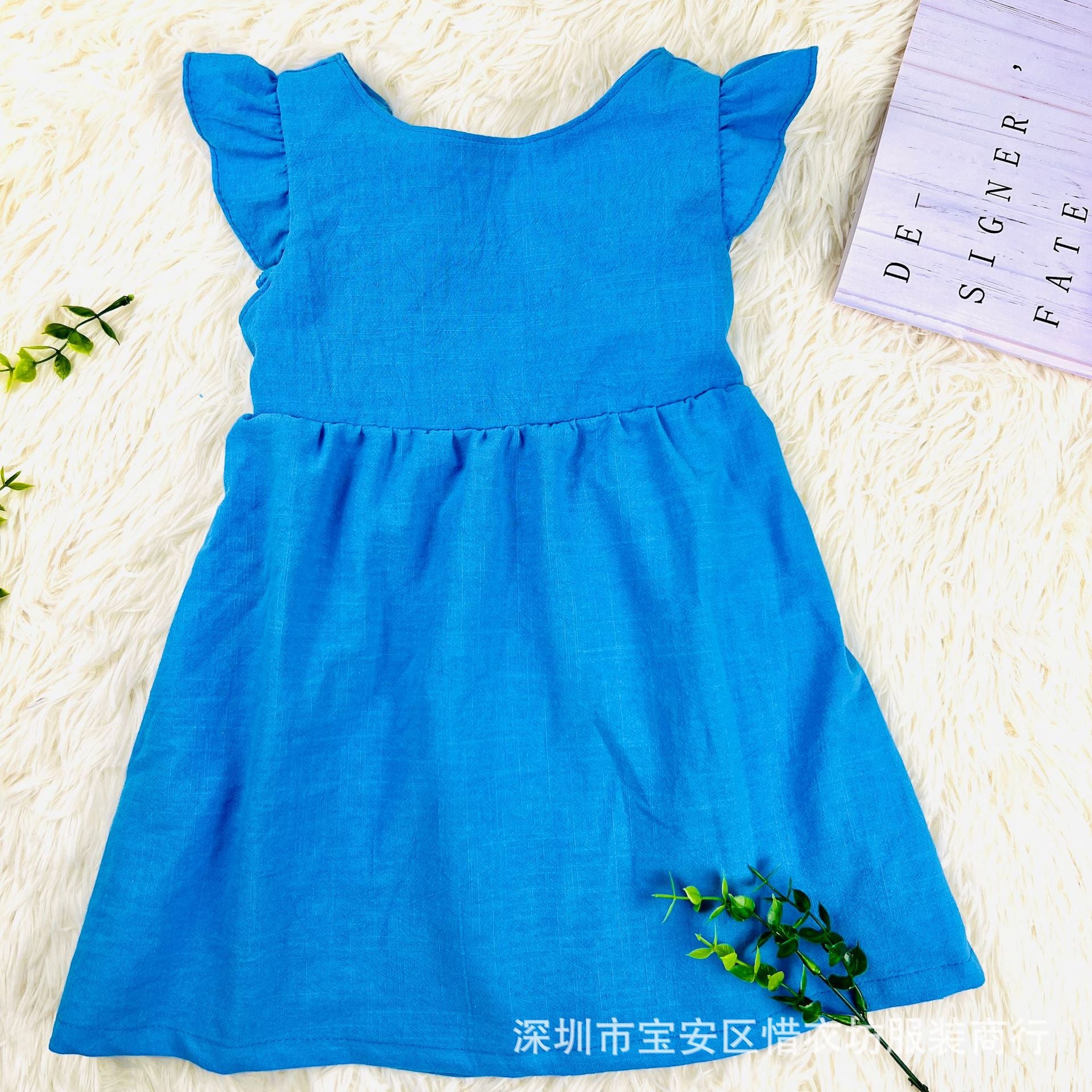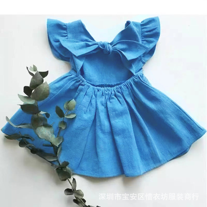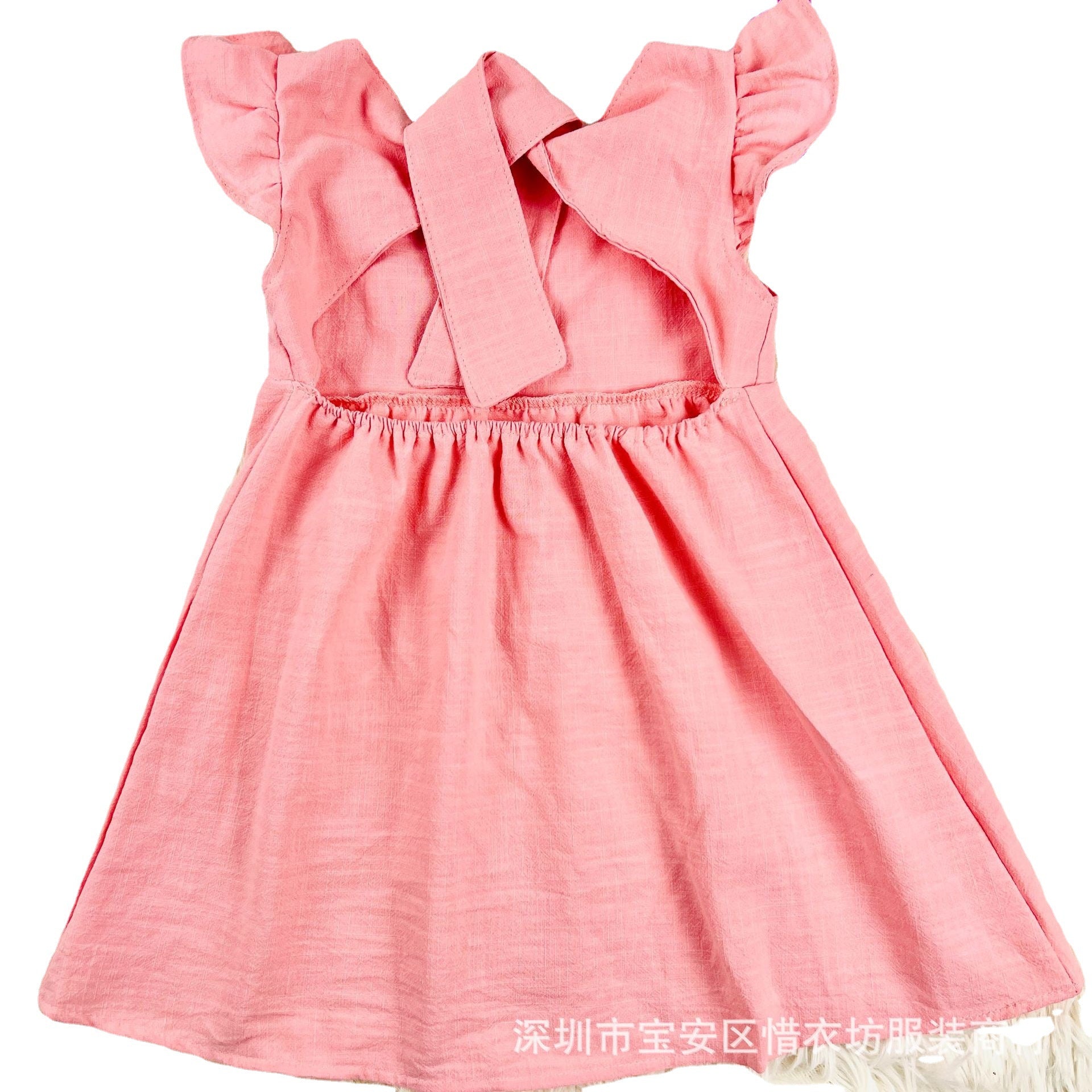 A23030917歐美棉麻純色-裙露背蝴蝶結背心裙