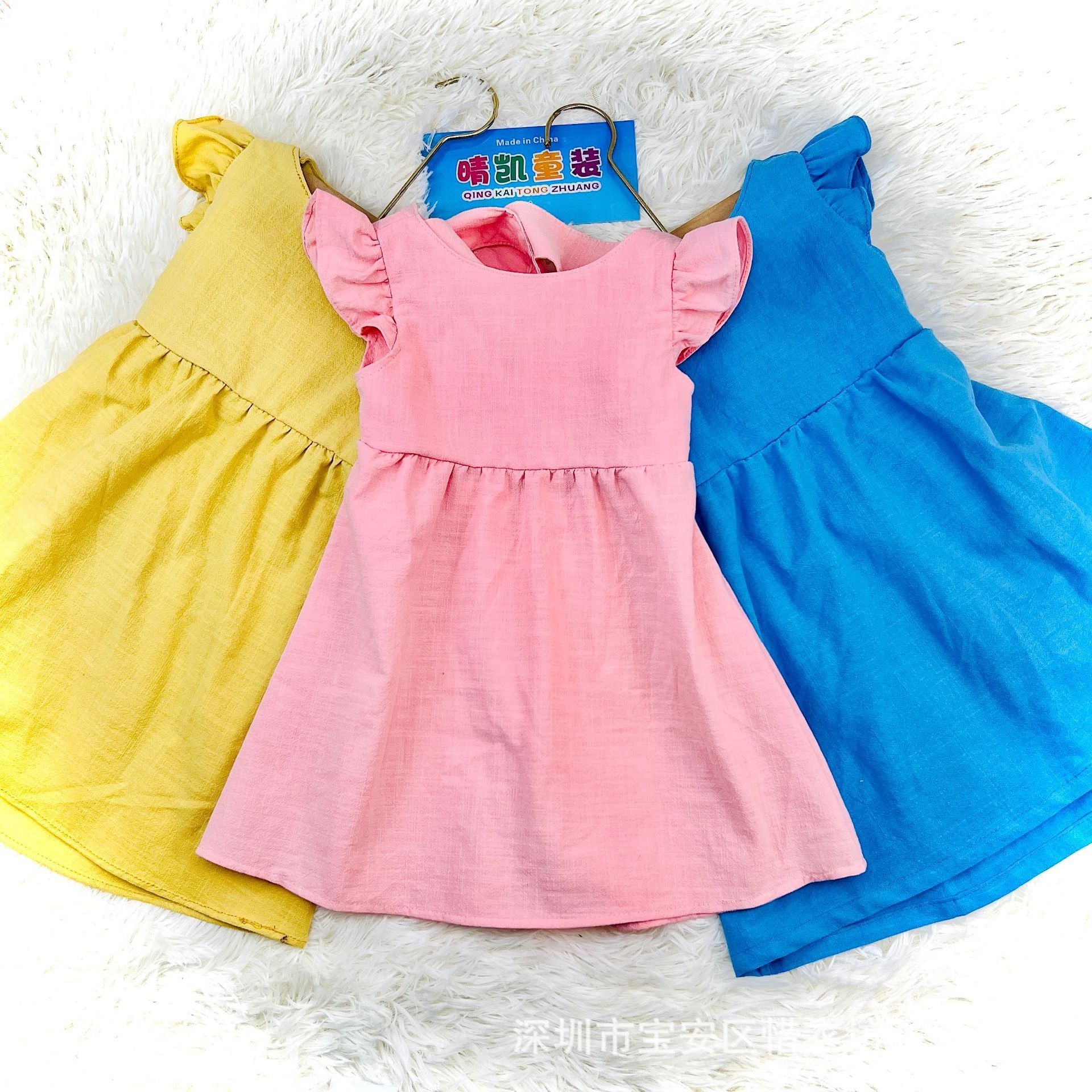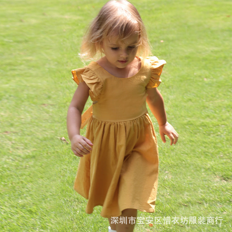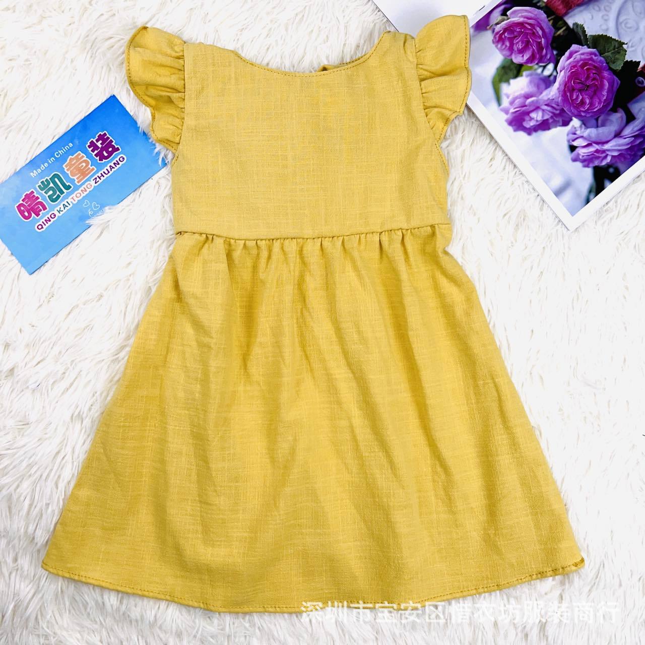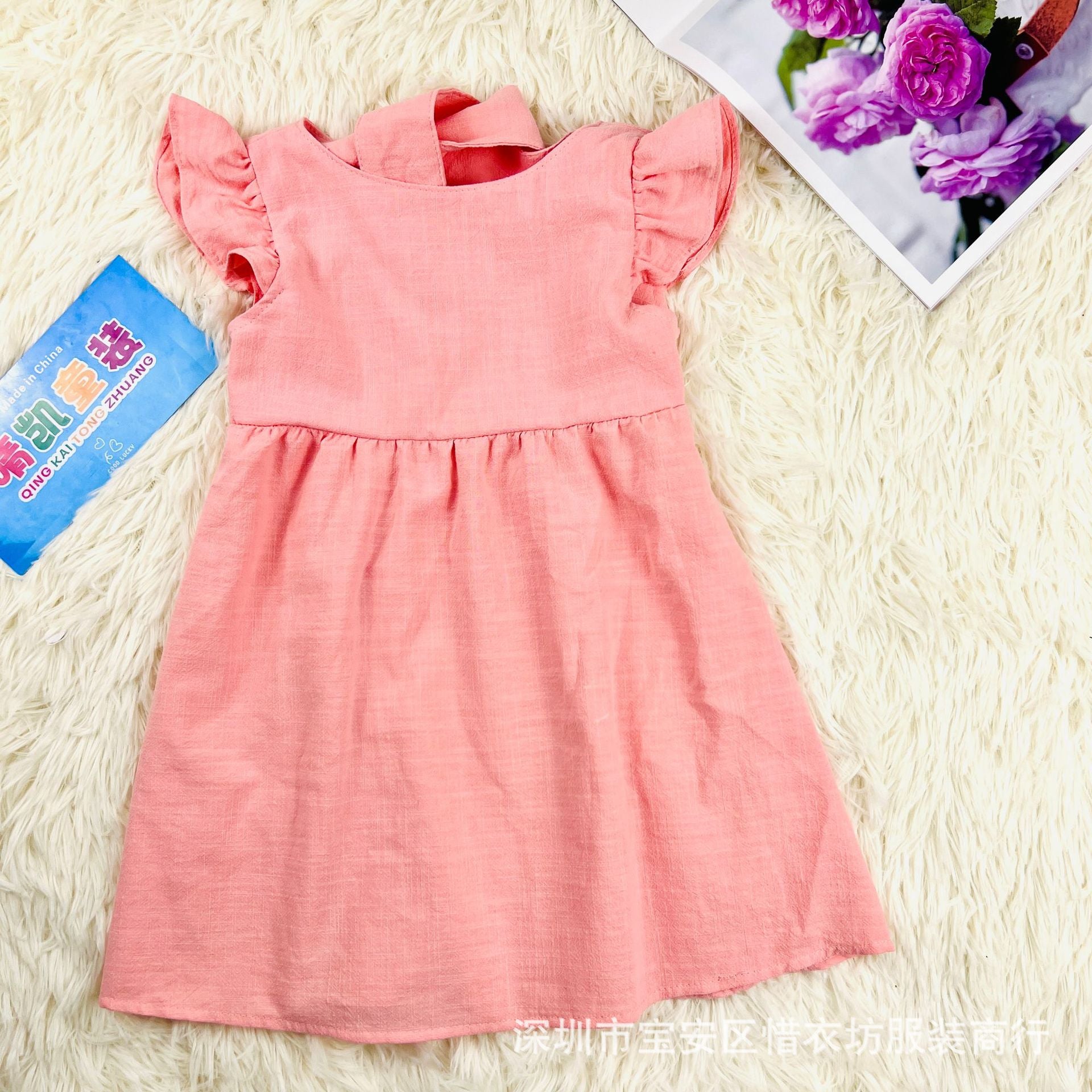 A23030917歐美棉麻純色-裙露背蝴蝶結背心裙