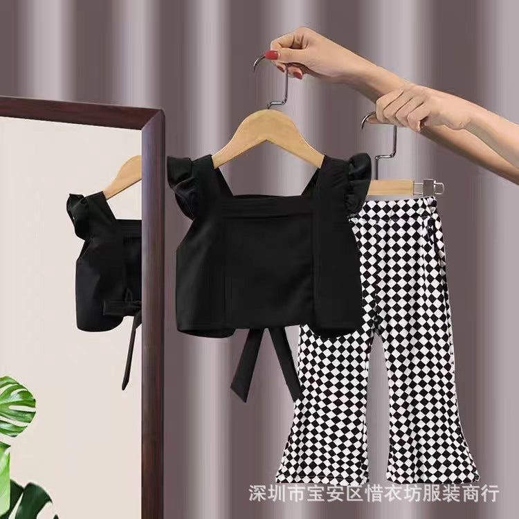 A25072301女童夏裝新款公主露背套裝女寶寶網紅兩件式