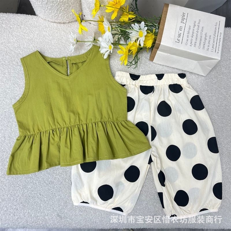 A25072309女童套裝夏季新款小童夏天衣服女寶寶背心防蚊褲兩件套潮