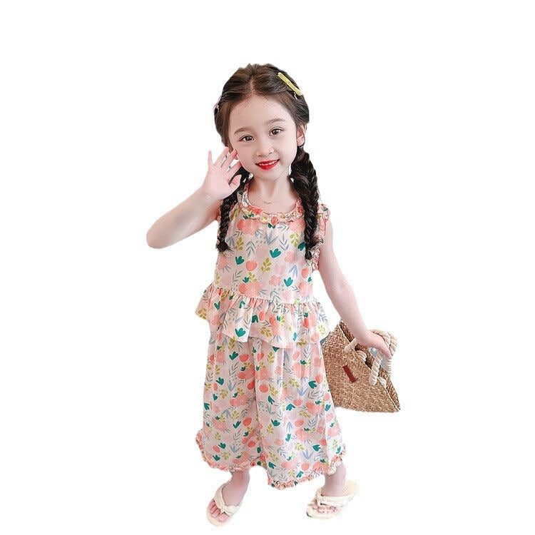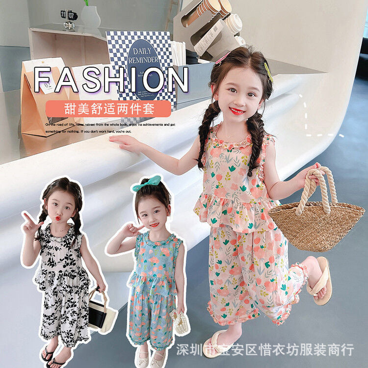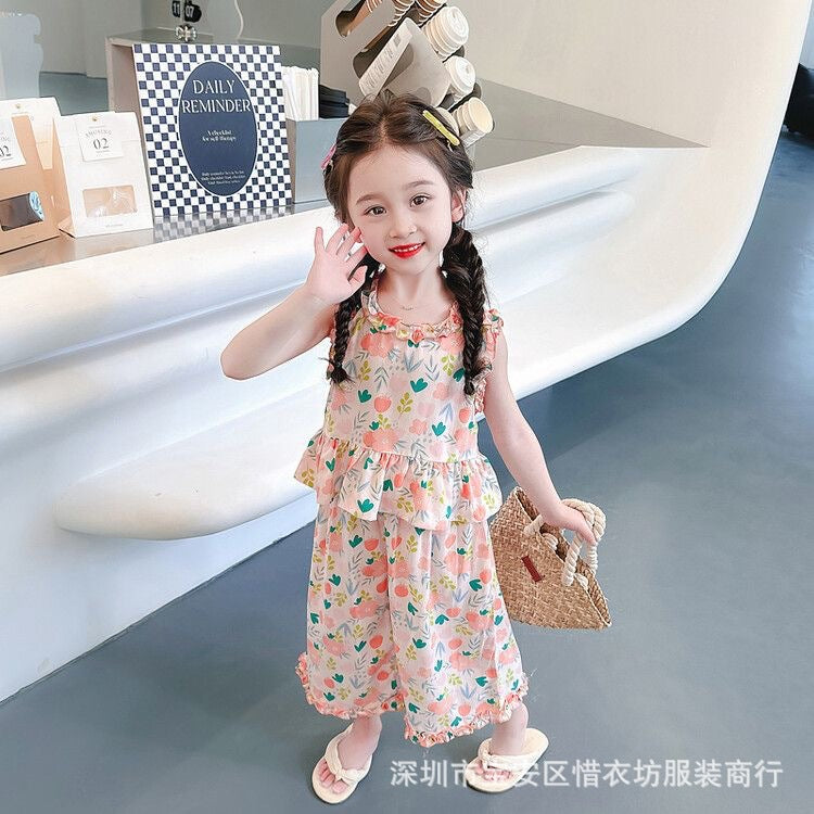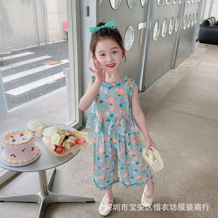 A25072310女童防蚊褲夏季套裝小女孩薄款夏裝兩件套寶寶長褲兒童洋氣