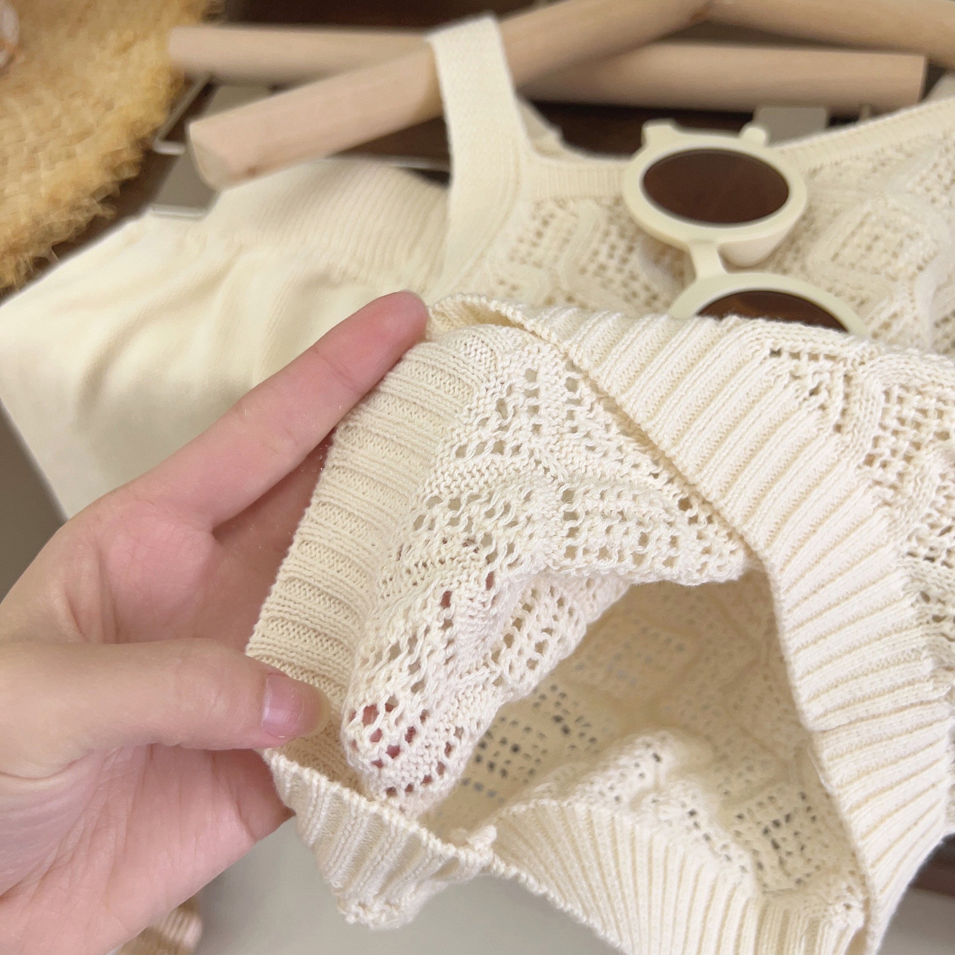 C24032402韓國版女童夏裝兒童針織吊帶衫短褲套裝薄款洋氣無袖背心兩件套新款