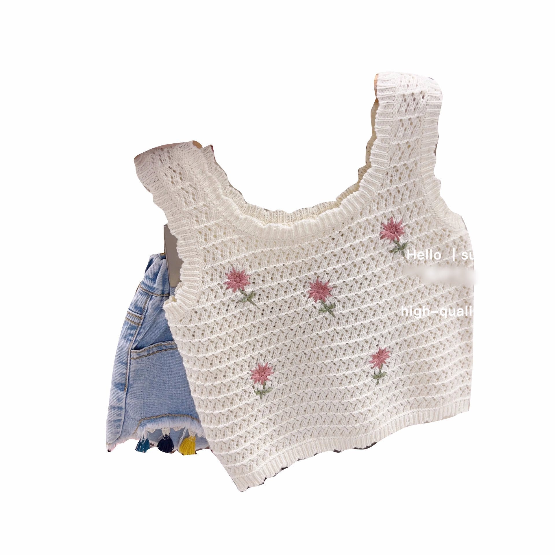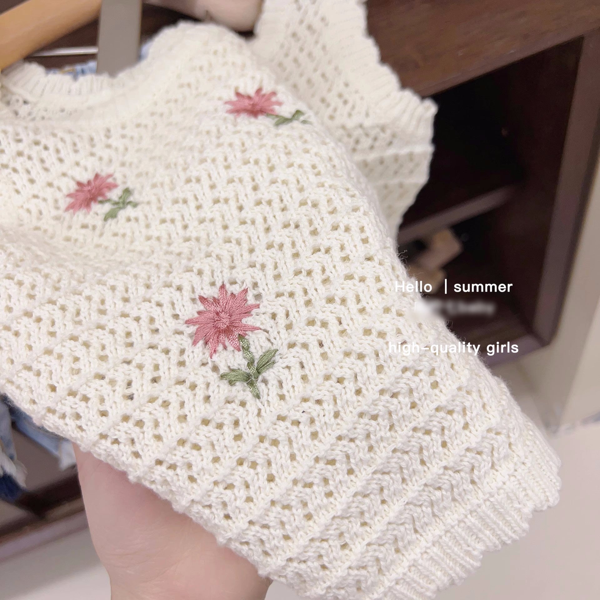 C24032409女童夏裝套裝2024年新女寶寶時尚洋氣針織背心兒童牛仔短褲兩件套