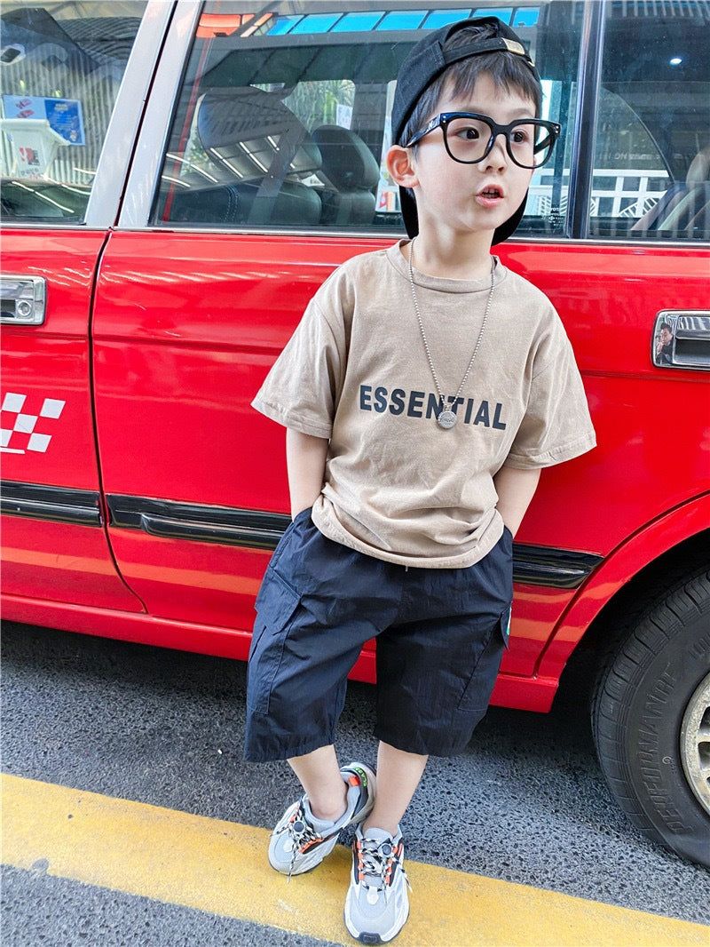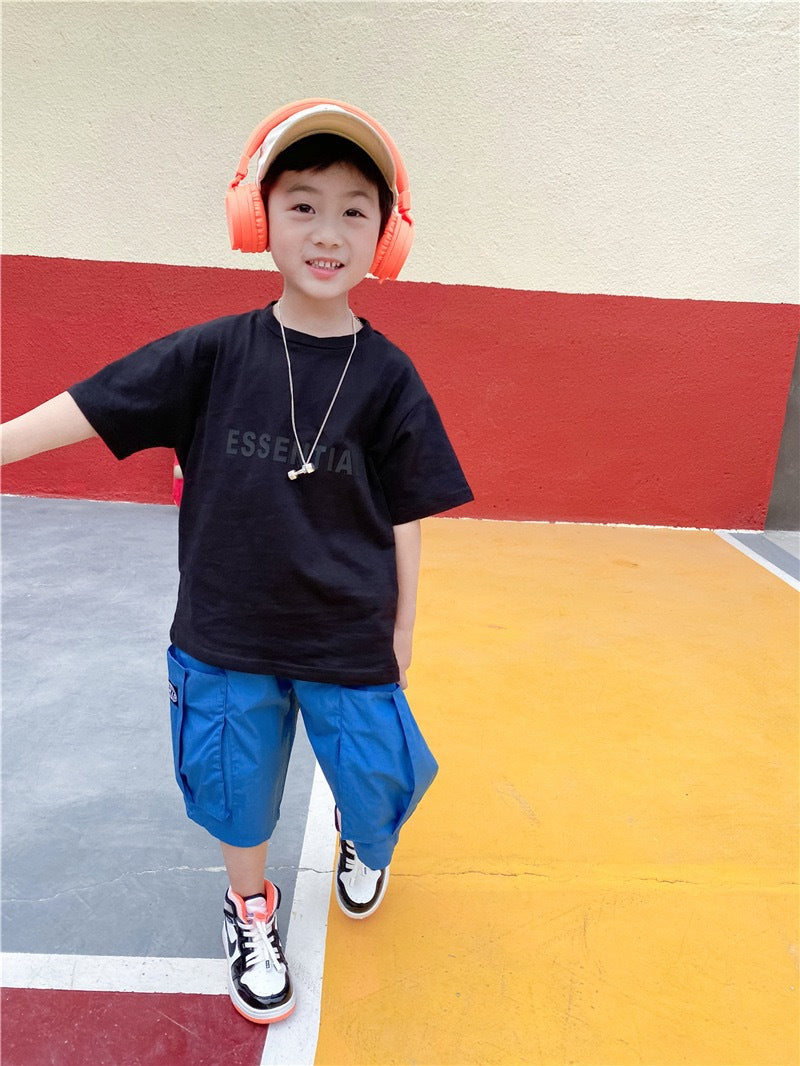 CA23072726春夏新款韓版中小兒童潮款棉質超軟男童寬鬆短袖字母圓領t恤