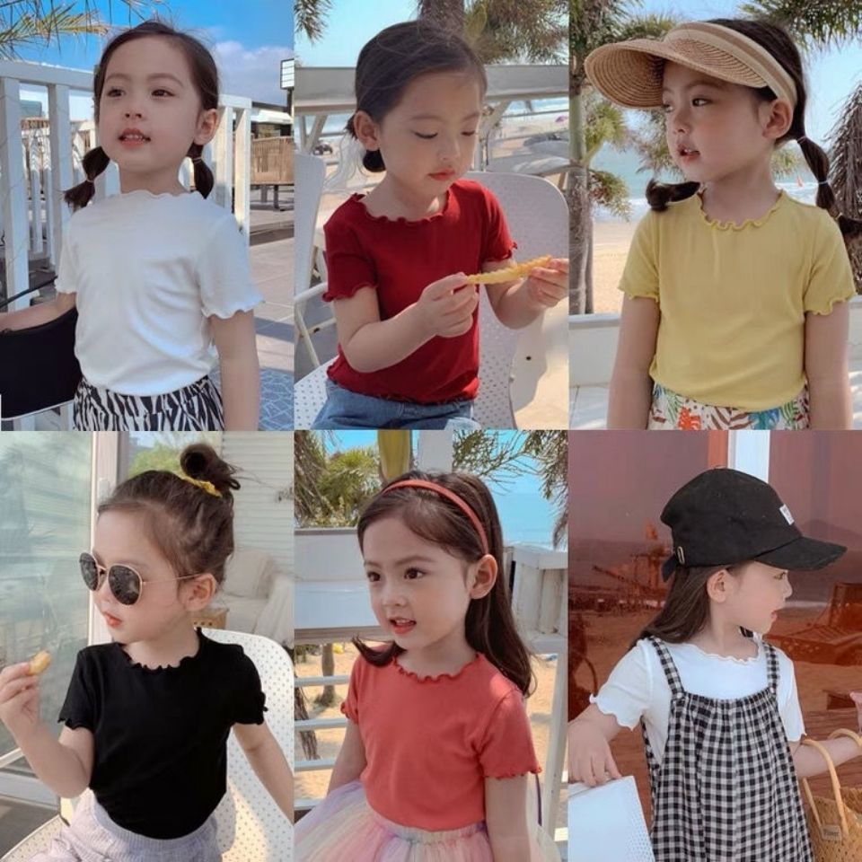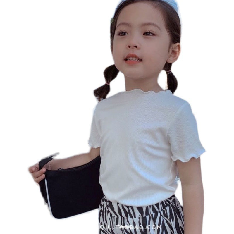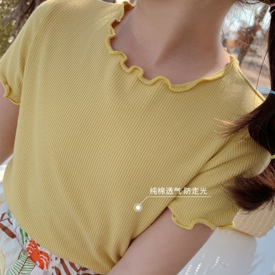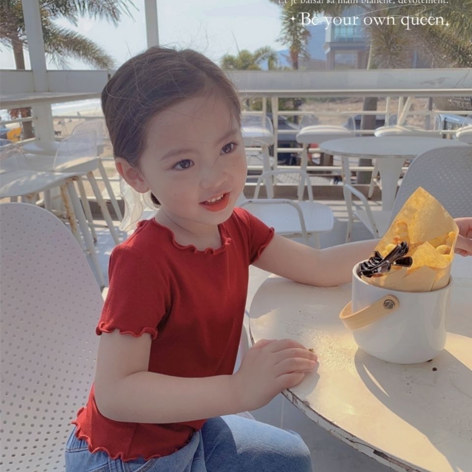 CA23072728新款女童木耳邊夏裝寶寶洋氣打底衫短袖冰絲圓領T恤兒童上衣