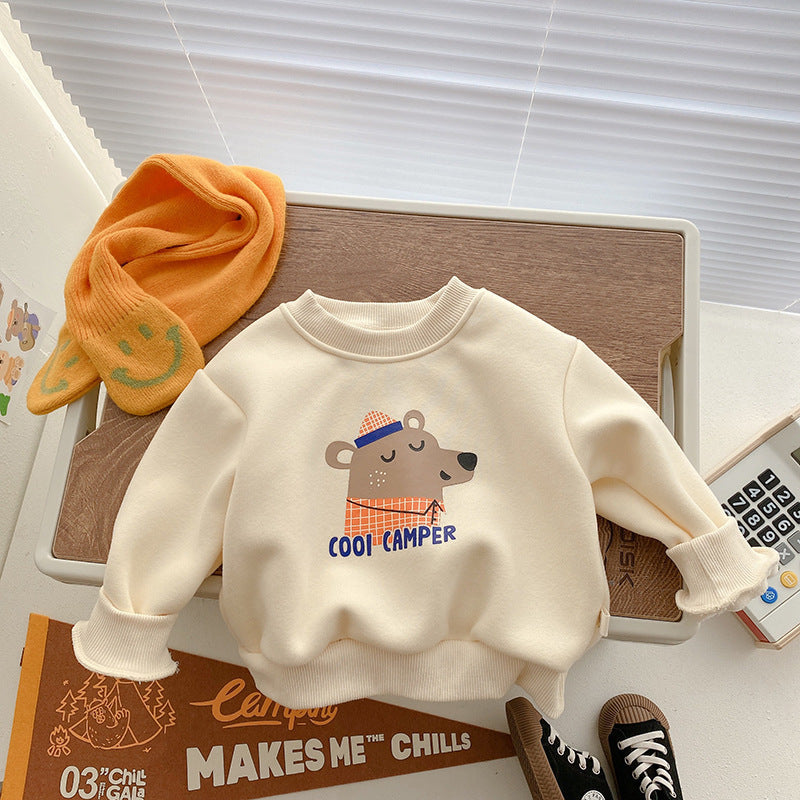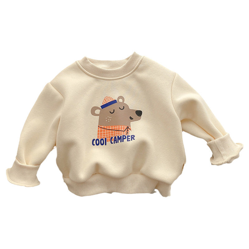 CA23101811兒童加絨衛衣2022冬季男女寶寶一體絨打底衫嬰兒韓版保暖上衣服裝
