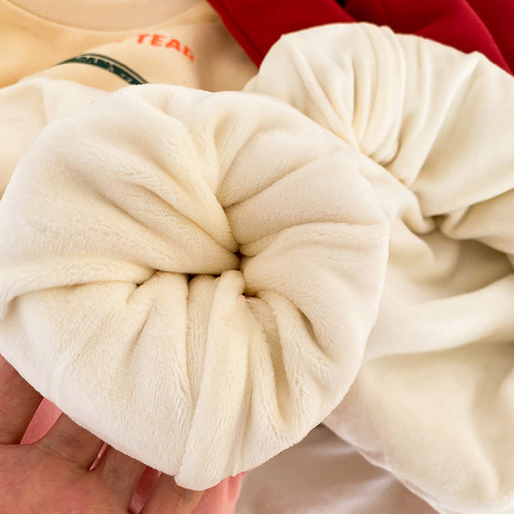 CA24011803新款女童過年平安喜樂衛衣加絨加厚圓領拜年服紅色寶寶兒童上衣潮