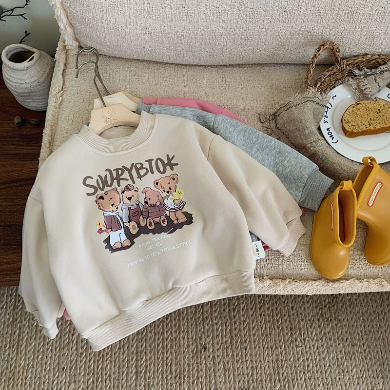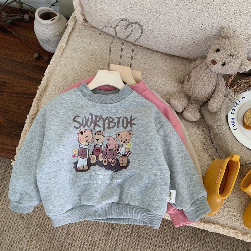 CA24011804女童冬季加絨衛衣2023新款兒童純棉卡通圓領薄絨打底冬季加絨上衣