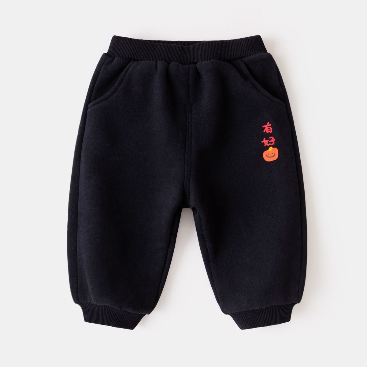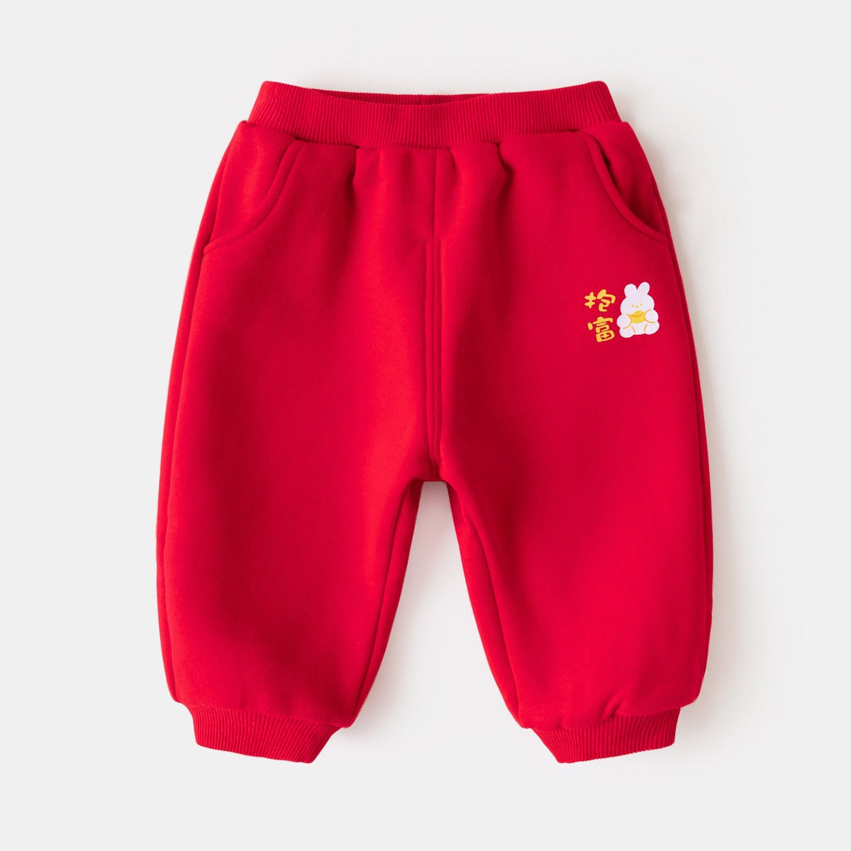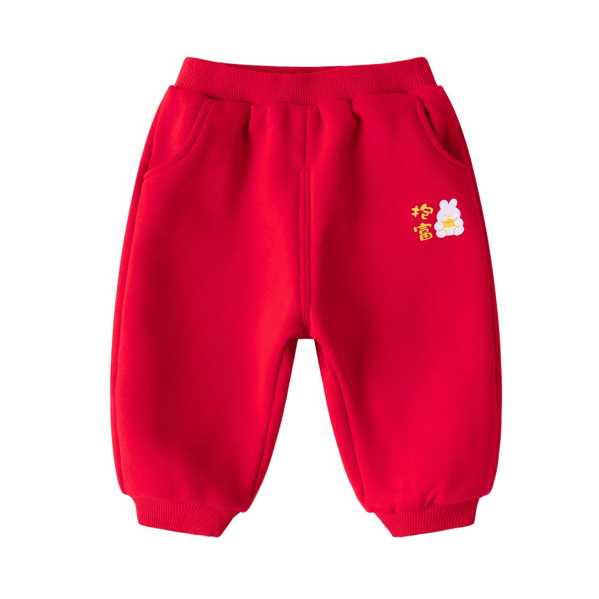 CA24011810兒童保暖褲子龍年拜年服男童加絨衛褲2023秋冬新款棉褲女童加厚褲
