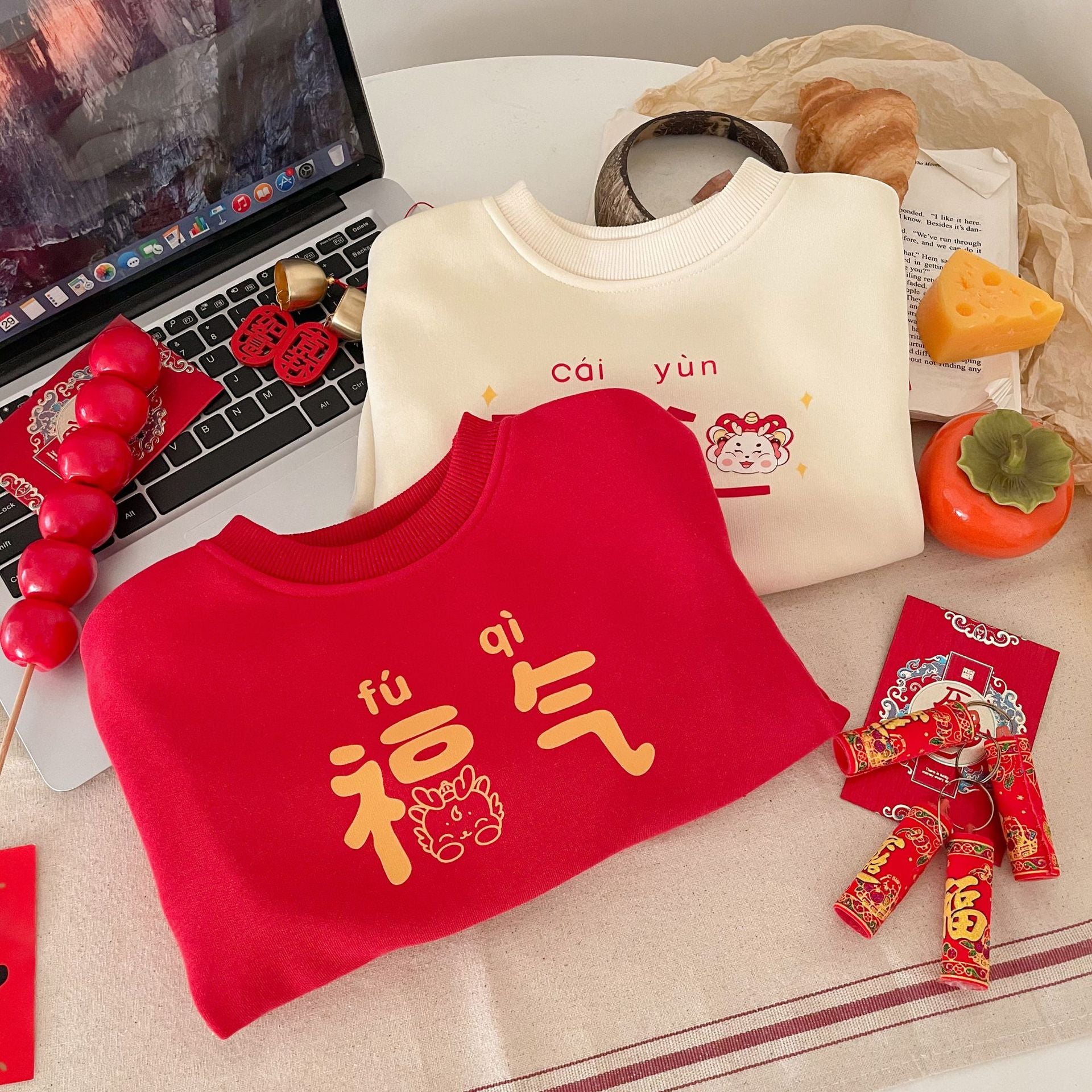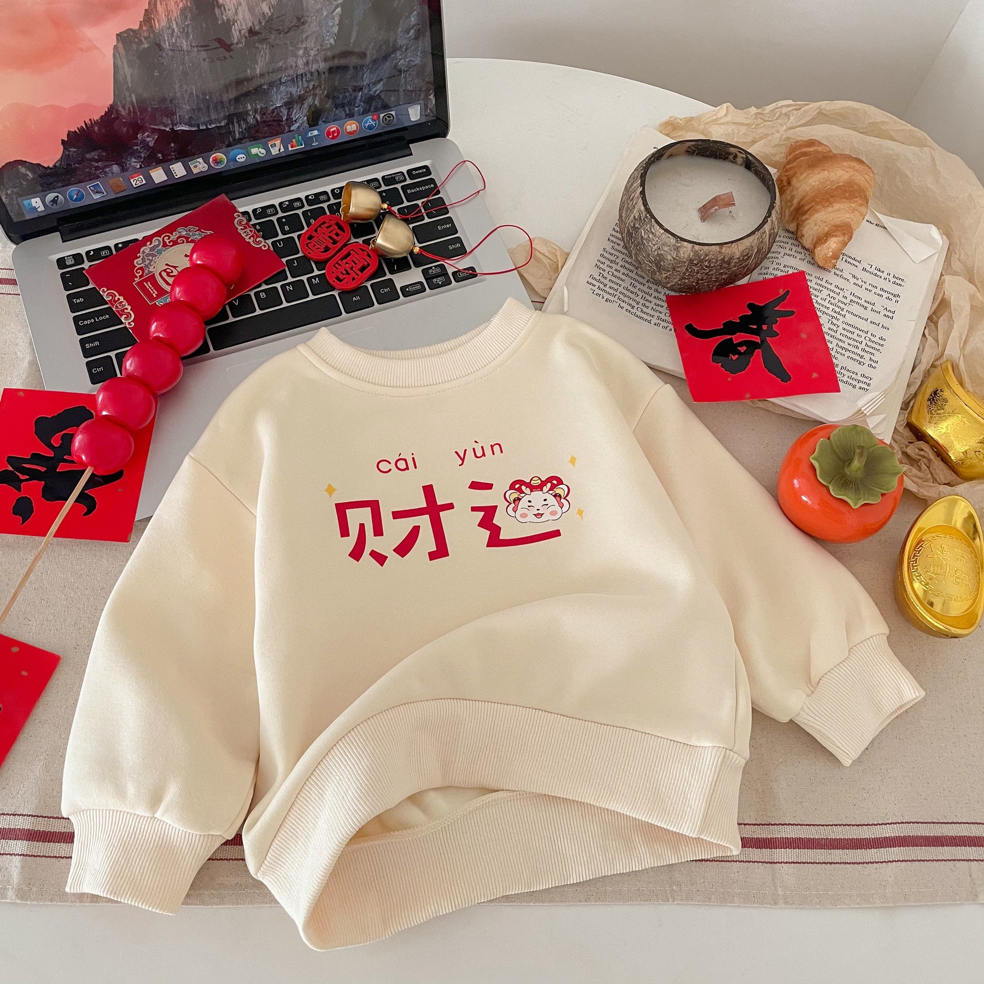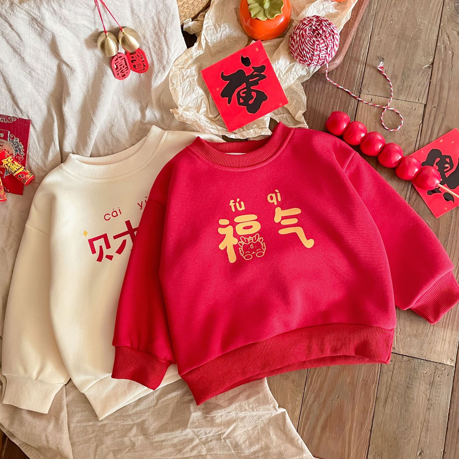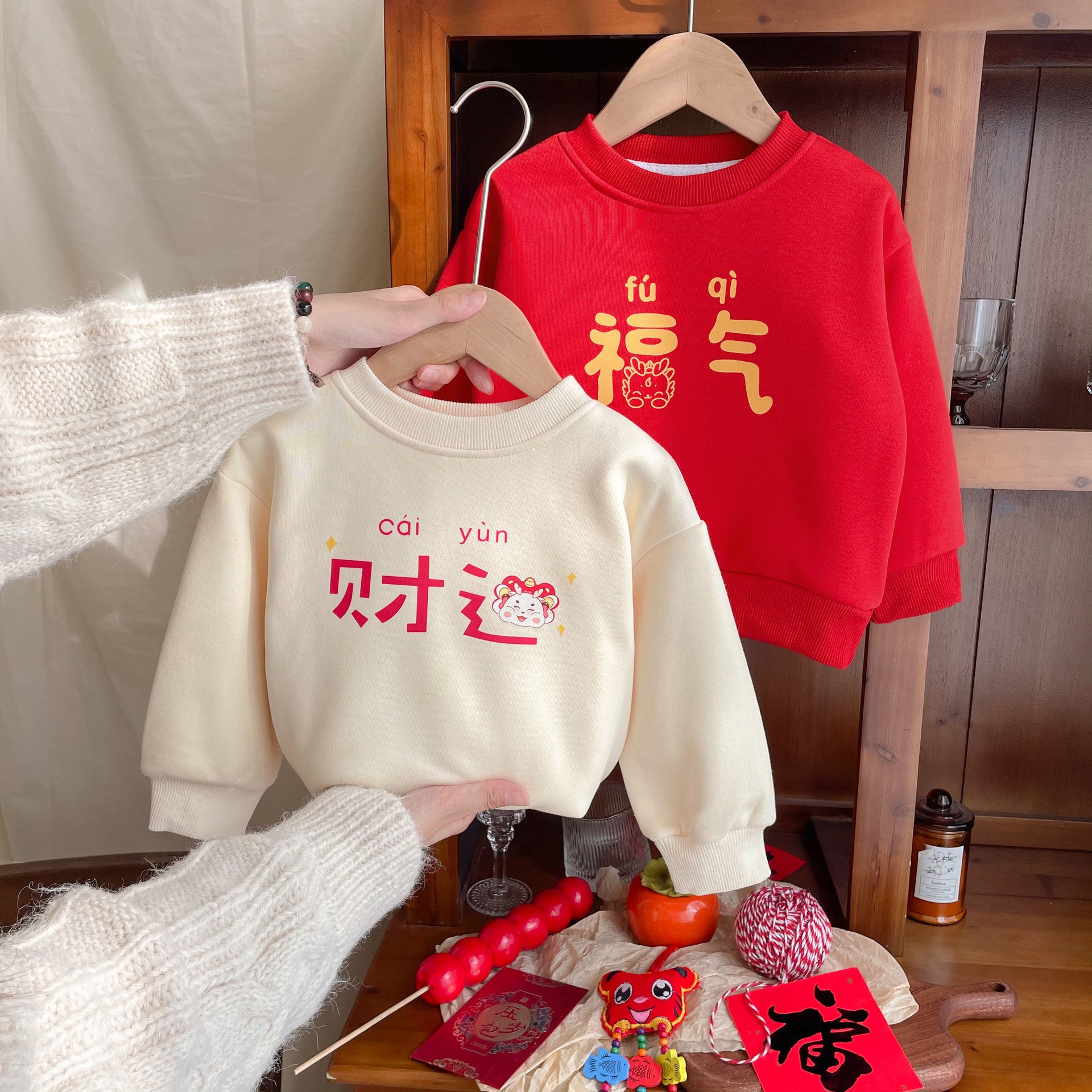 CA24011818龍年童裝兒童加絨衛衣新年服中國風保暖洋氣男女寶寶外套拜年服裝