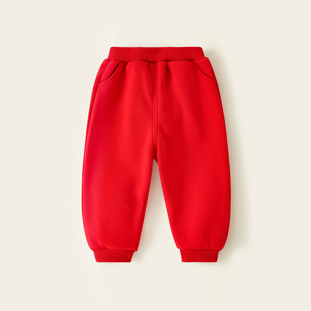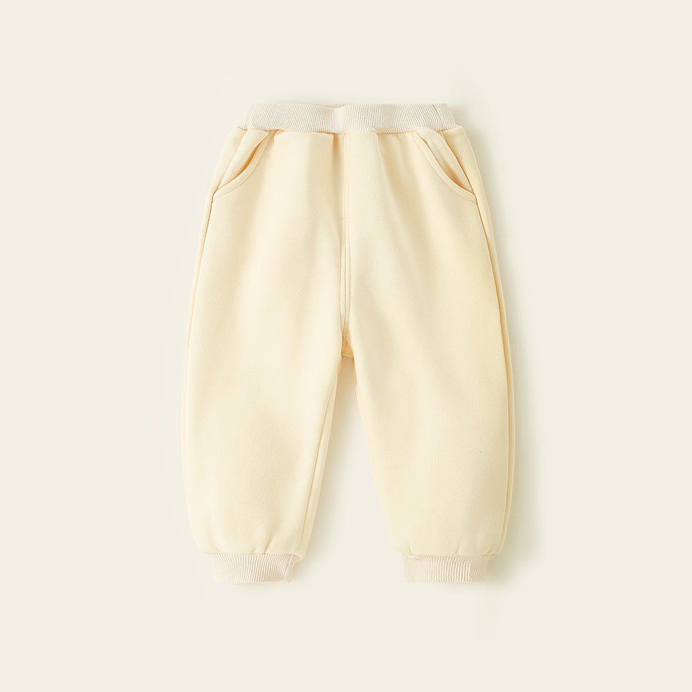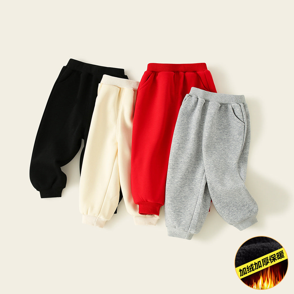 CA24011820秋冬童裝男童褲子加絨兒童純色棉百搭衛褲寶寶束腳純色休閒一體絨