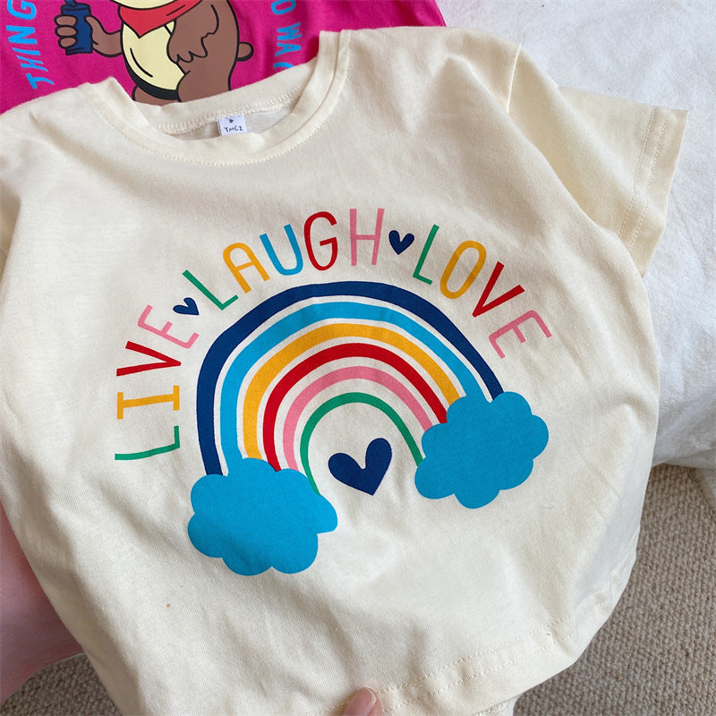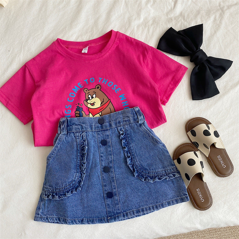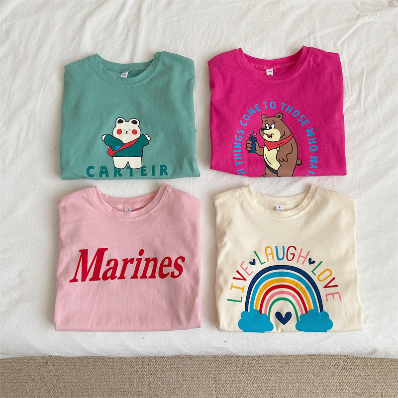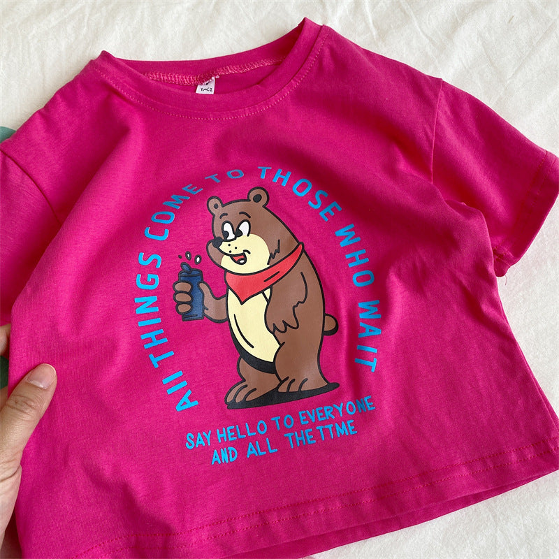 CA24042802韓國童裝兒童童裝兒童洋氣卡通短袖T恤上衣2023夏季時尚小女孩全棉T潮