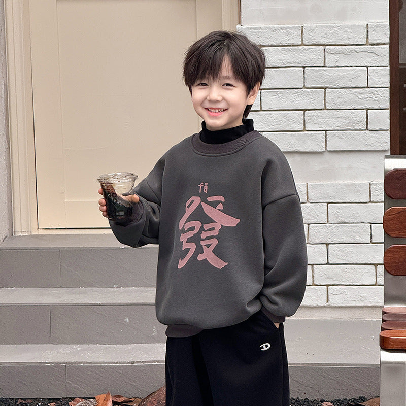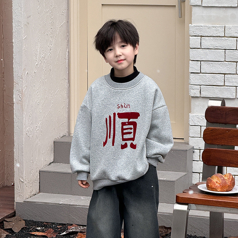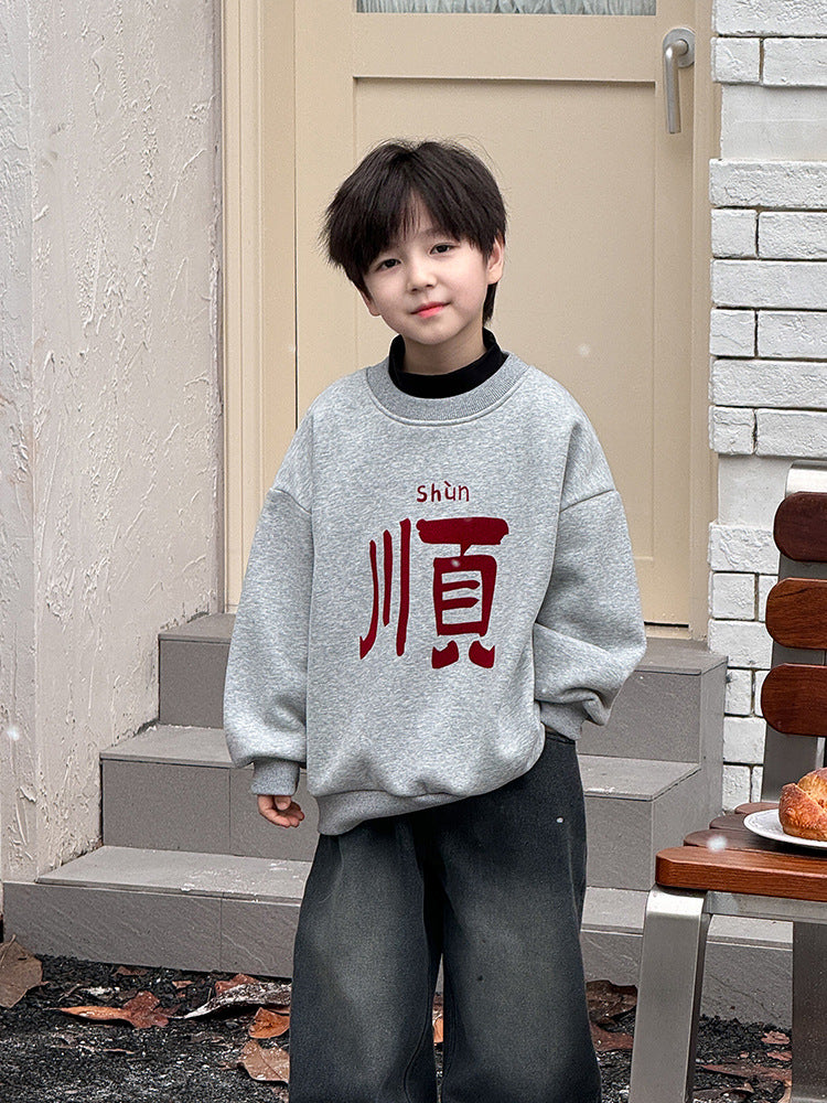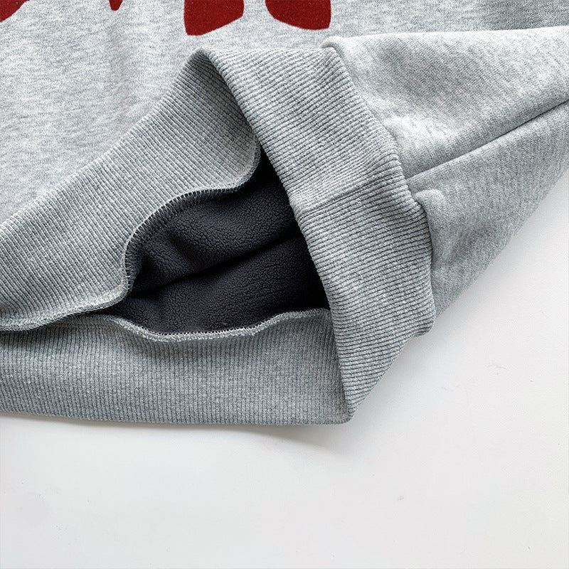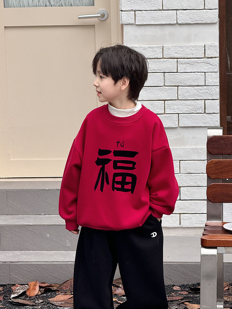 CA24121804男童加絨衛衣2025新款冬季加厚一體絨過年新年紅色喜慶兒童拜年服