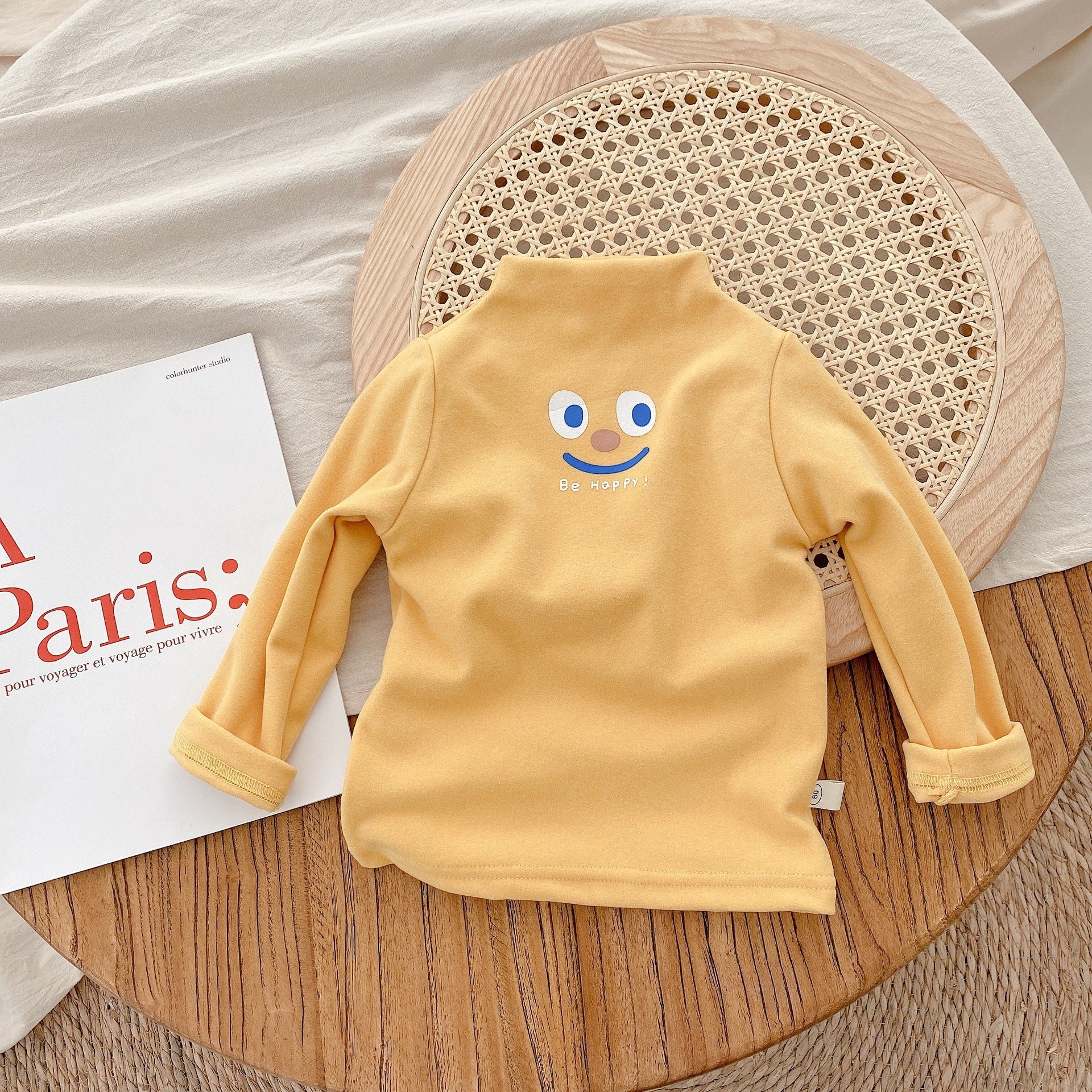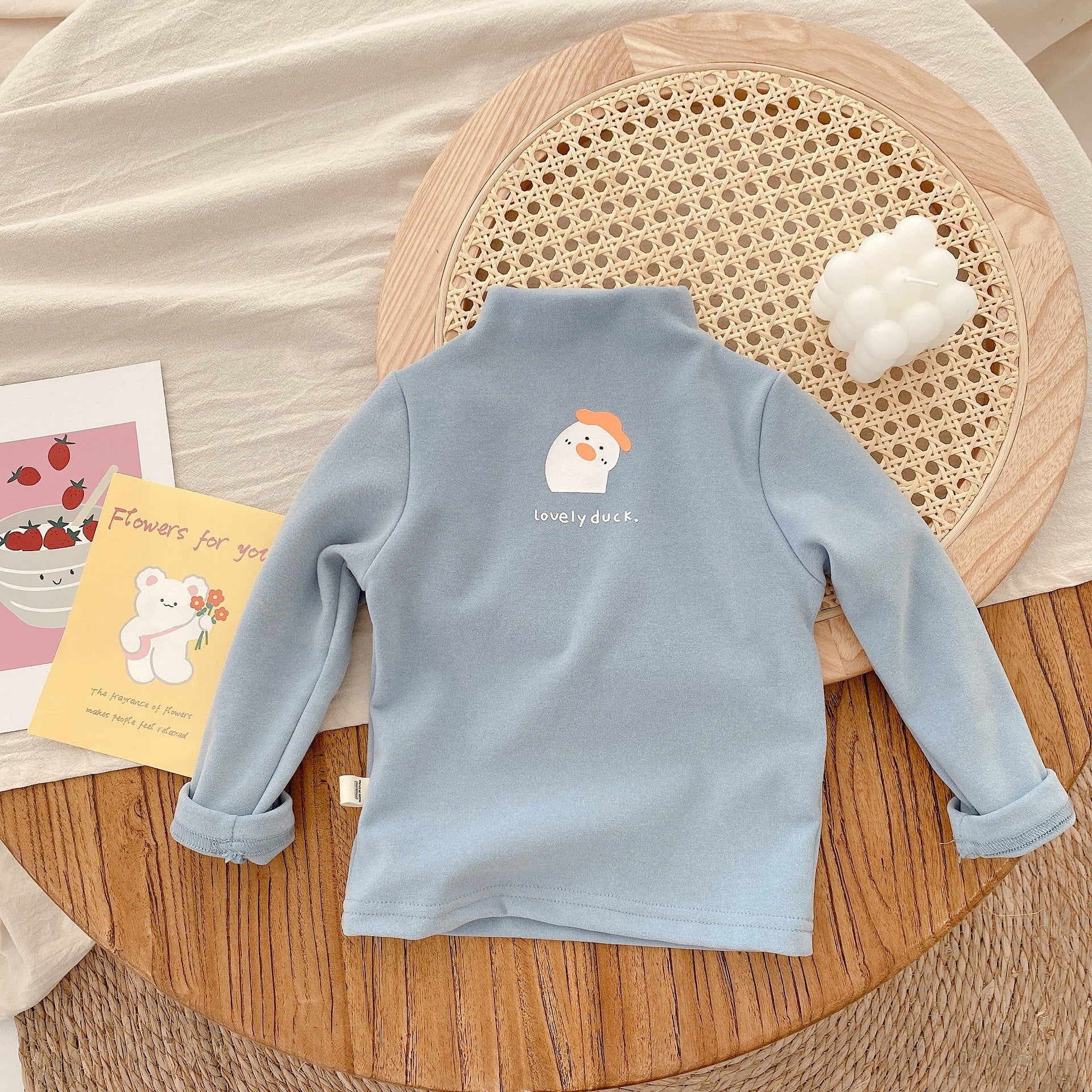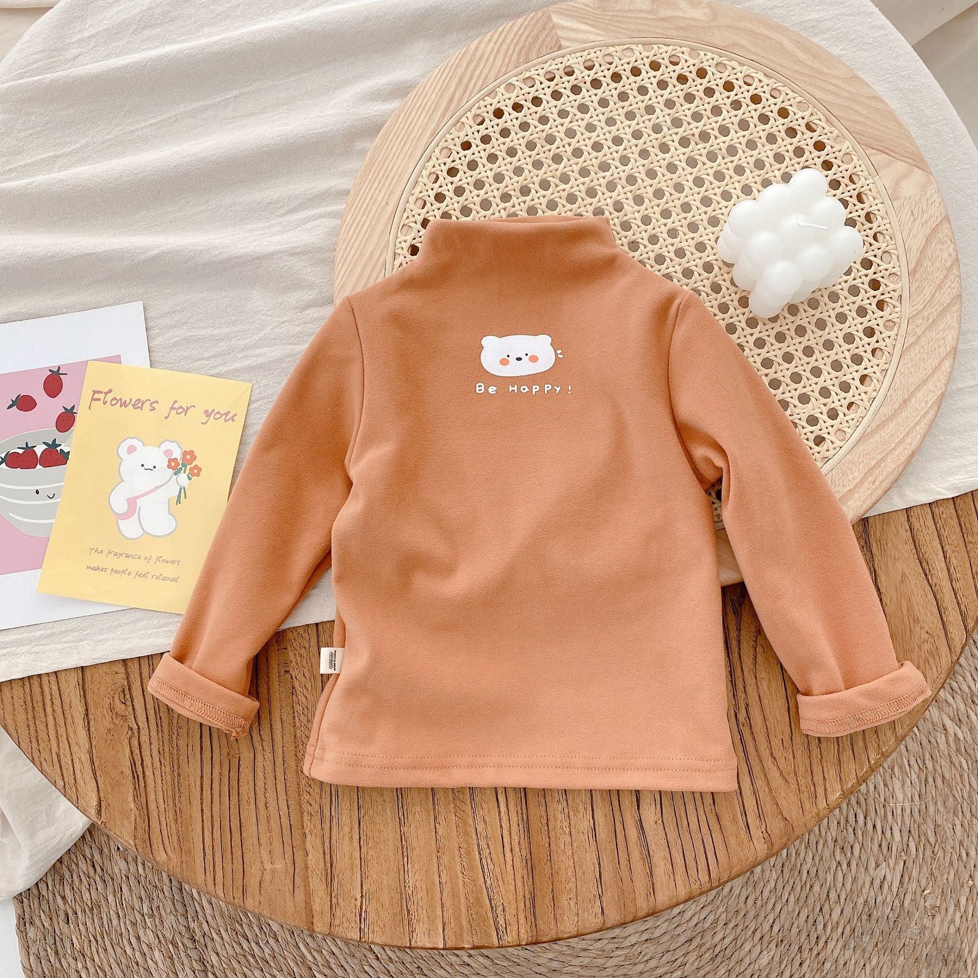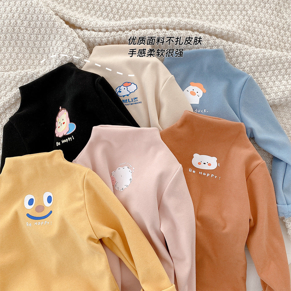 CA24121809兒童保暖德絨打底衫秋冬季裝男女寶寶純色T卹半高領長袖上衣
