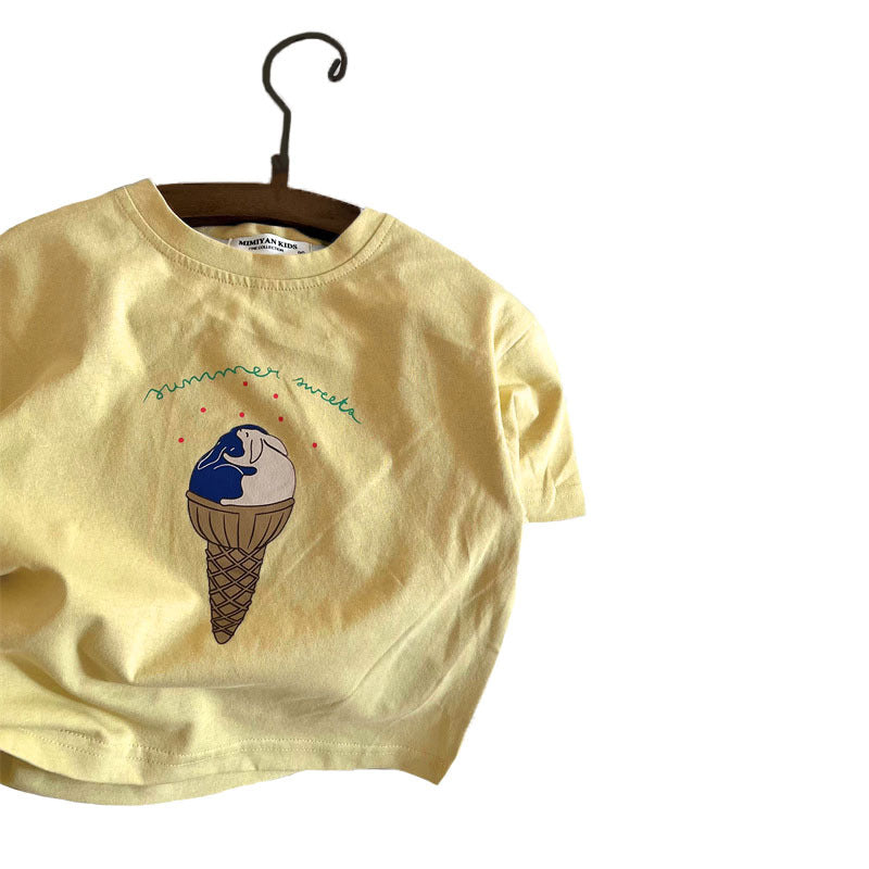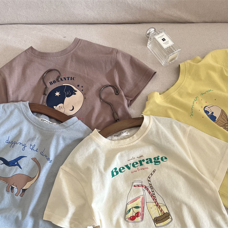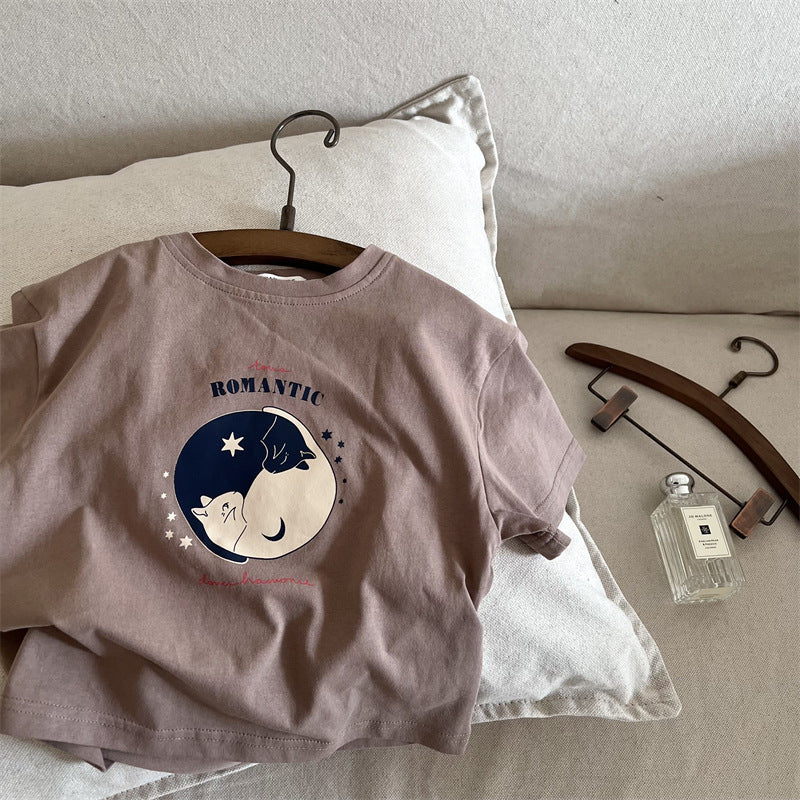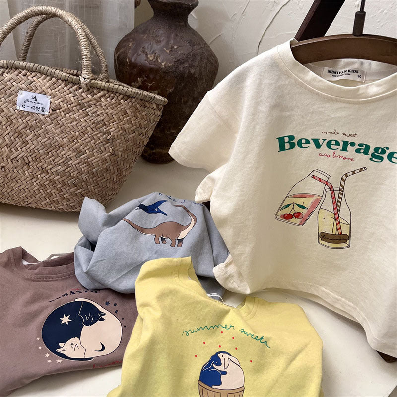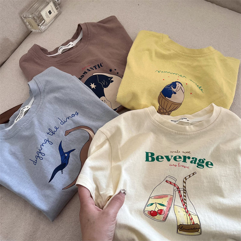 CA25052120兒童短袖夏季新款男女童圓領卡通印花T恤寶寶純色日系潮衫