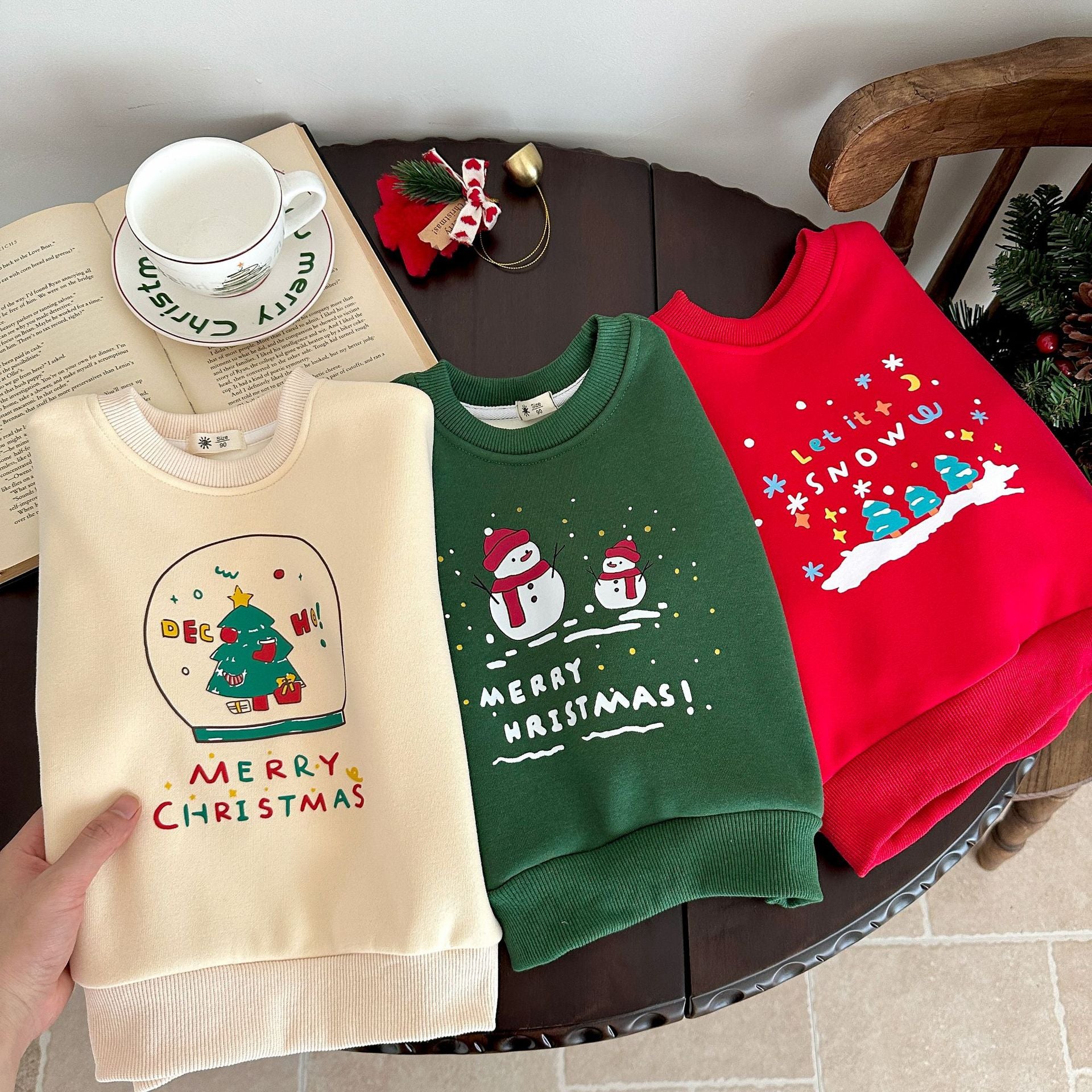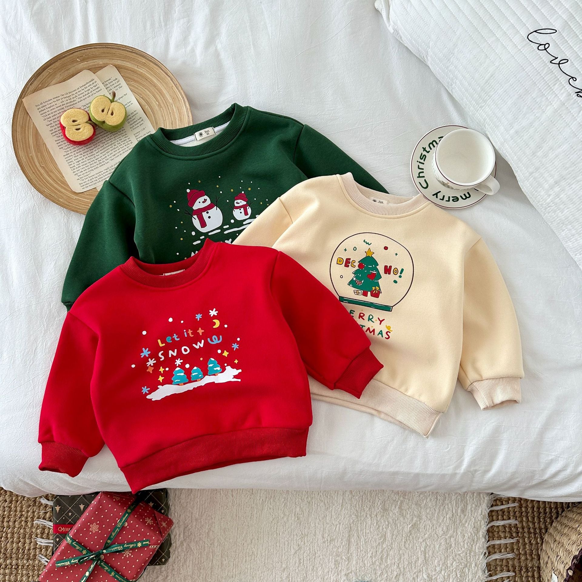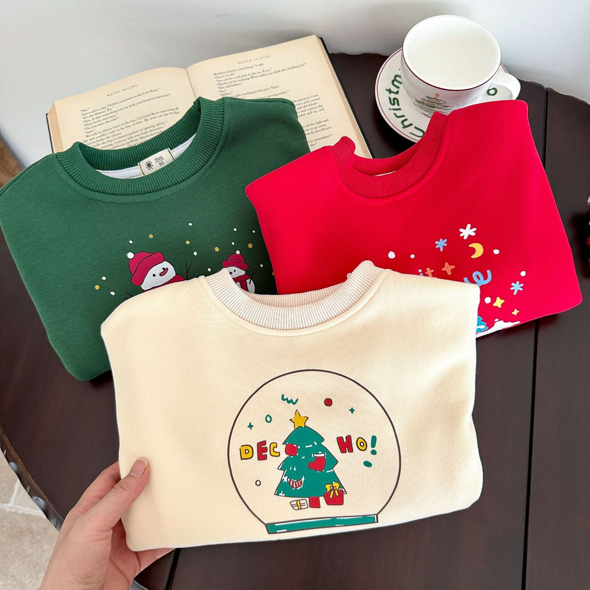 CA25112703跨國歐美童裝加絨衛衣秋冬長袖T恤打底衫美式新年聖誕節圓領上衣