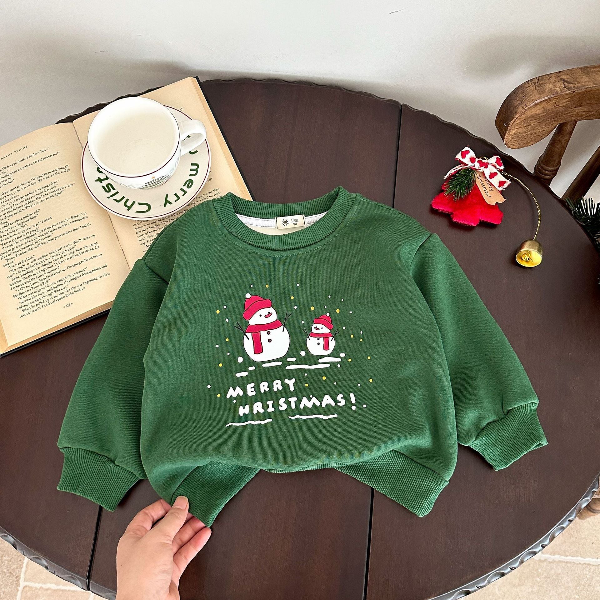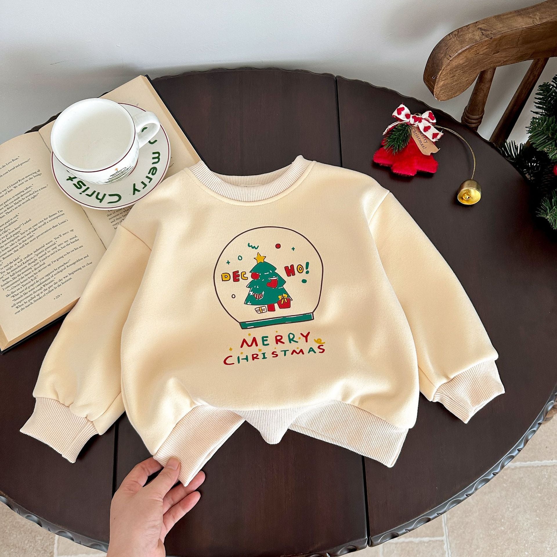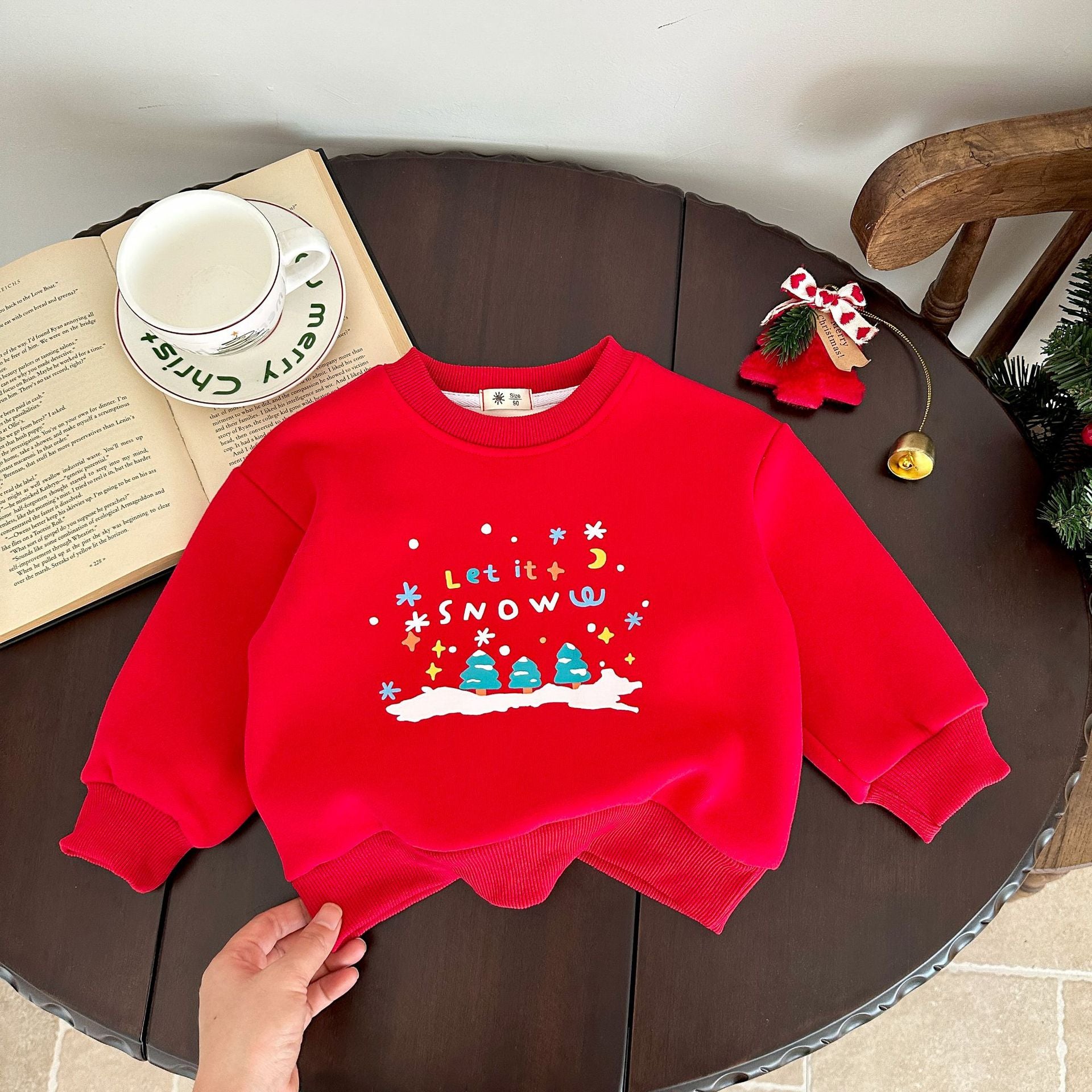 CA25112703跨國歐美童裝加絨衛衣秋冬長袖T恤打底衫美式新年聖誕節圓領上衣