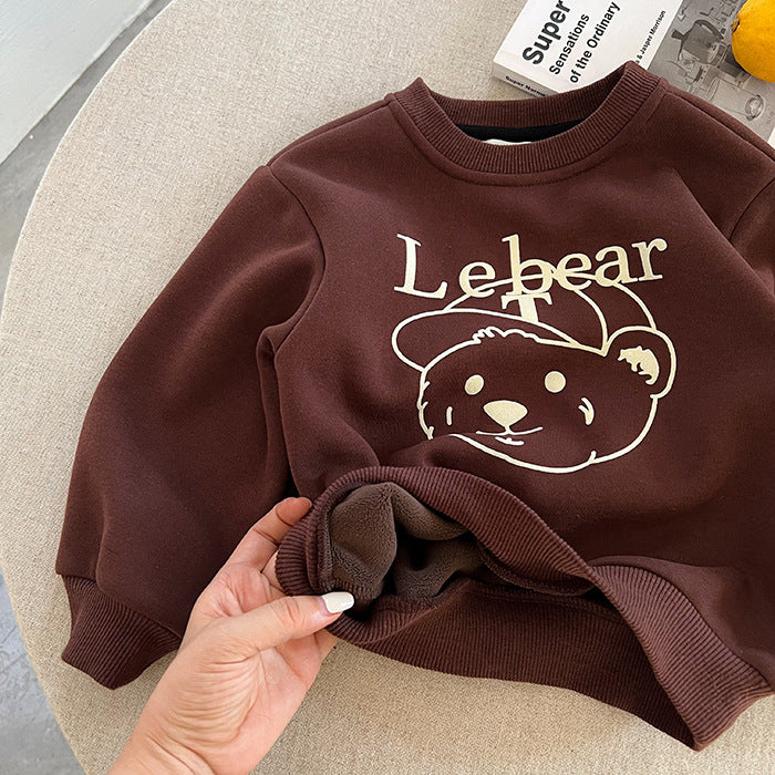 CA25112707兒童衛衣冬季男童加絨套頭衫內搭一體絨潮寶寶裙打底衫女加厚潮
