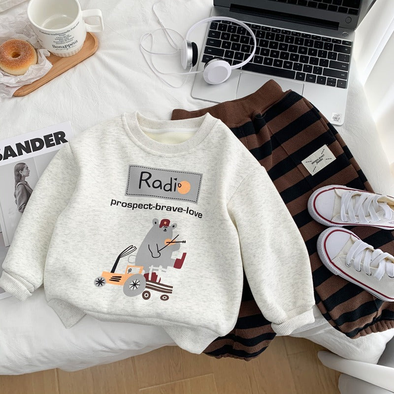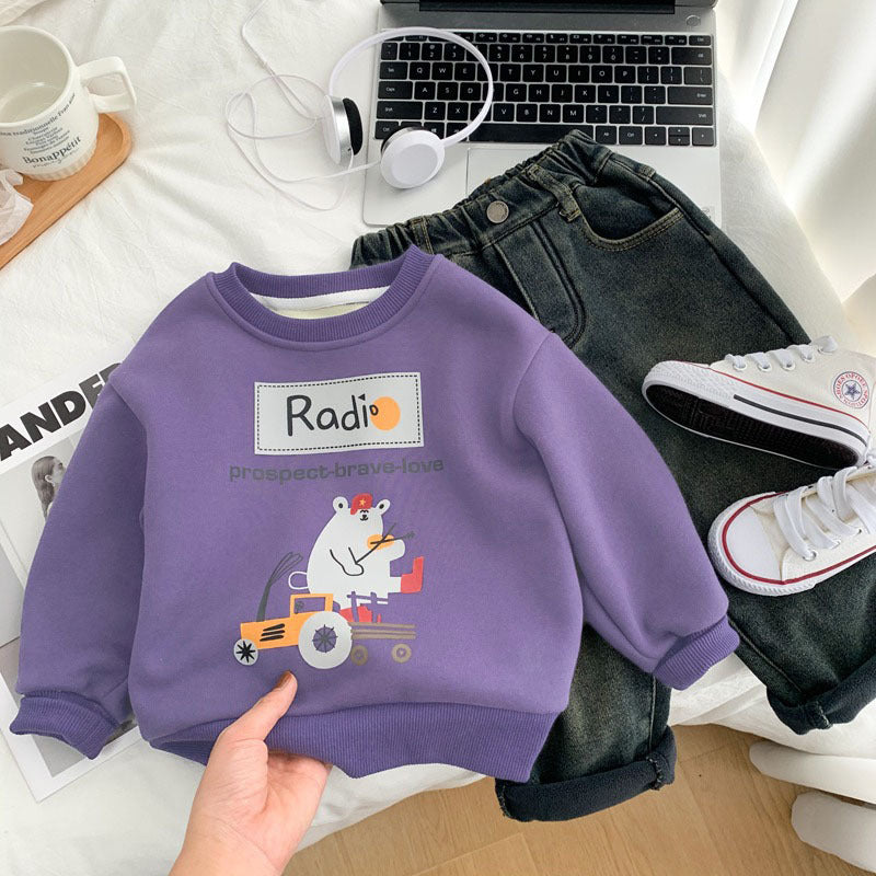 CA25112709男童加絨衛衣秋冬裝中小童卡通洋氣套頭衫2023新款兒童一體絨上衣