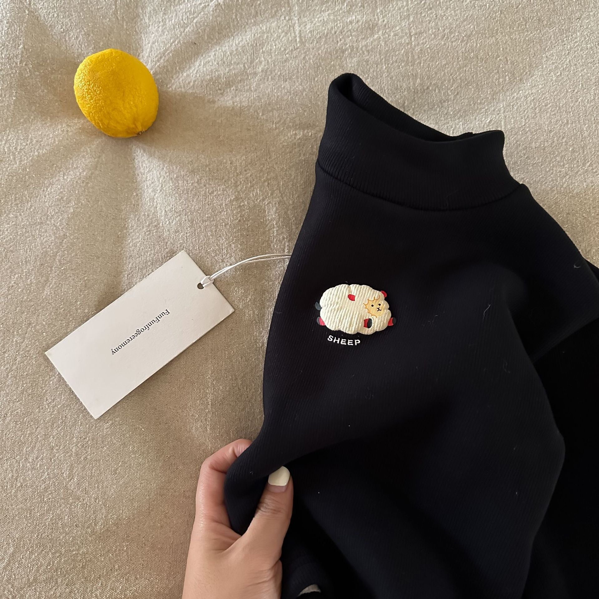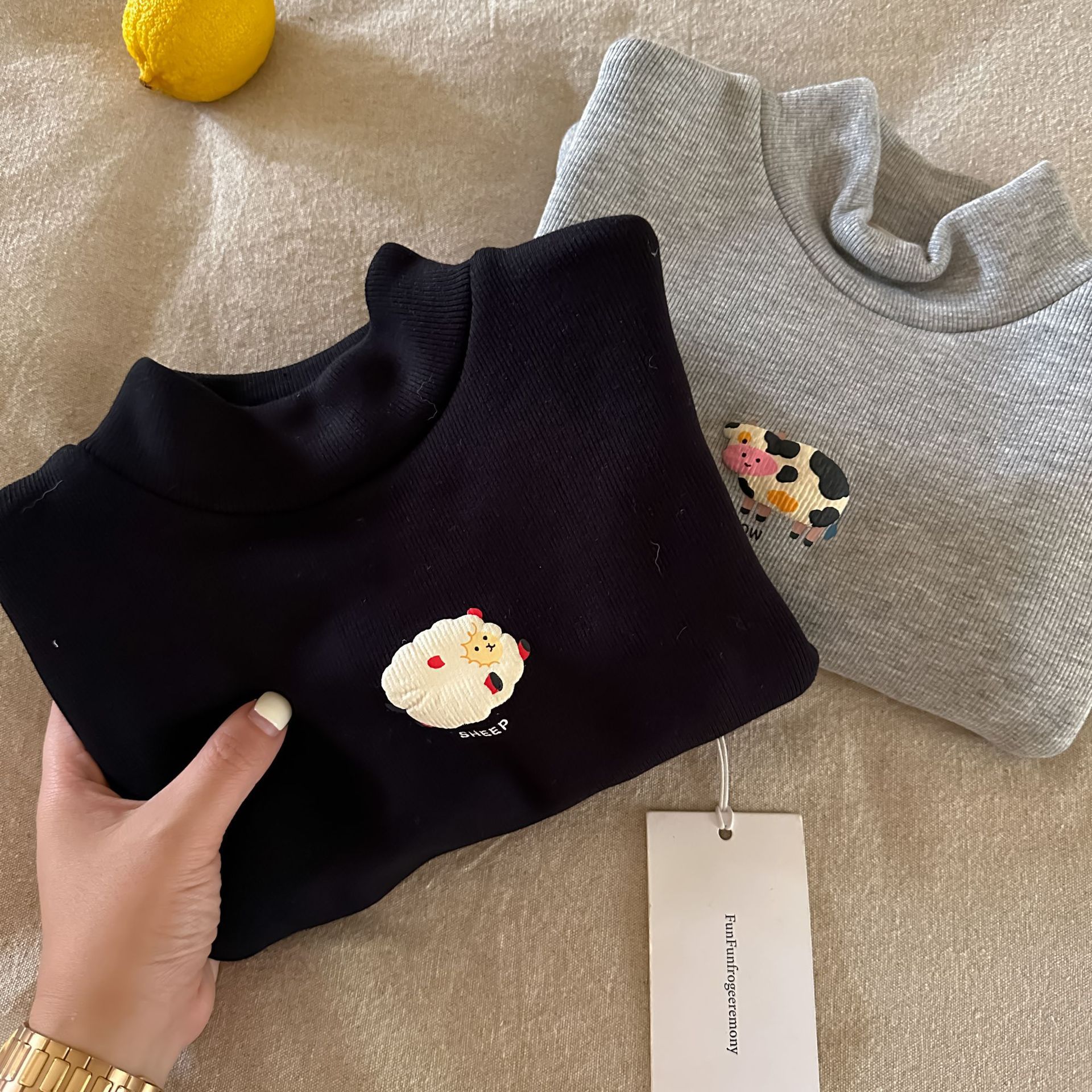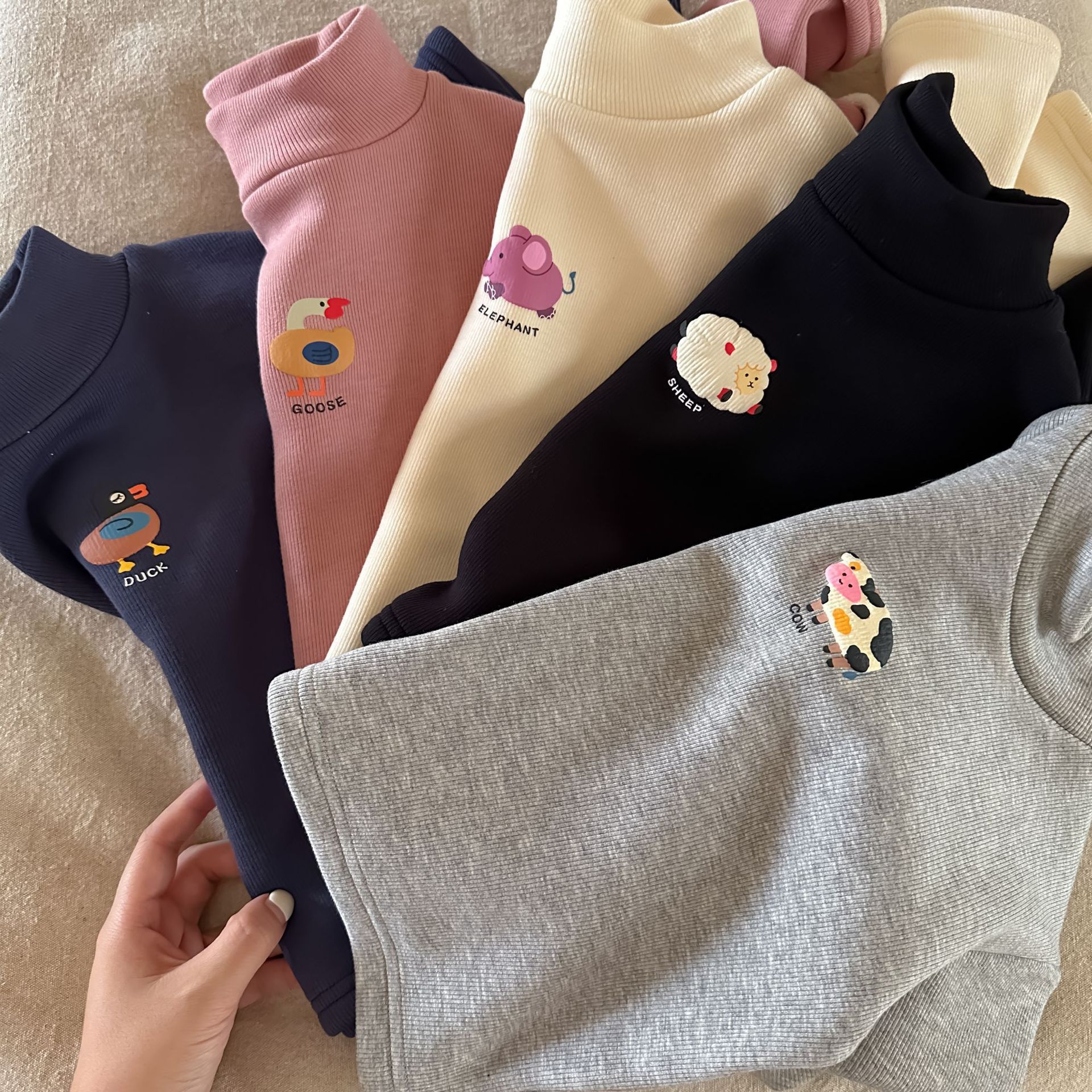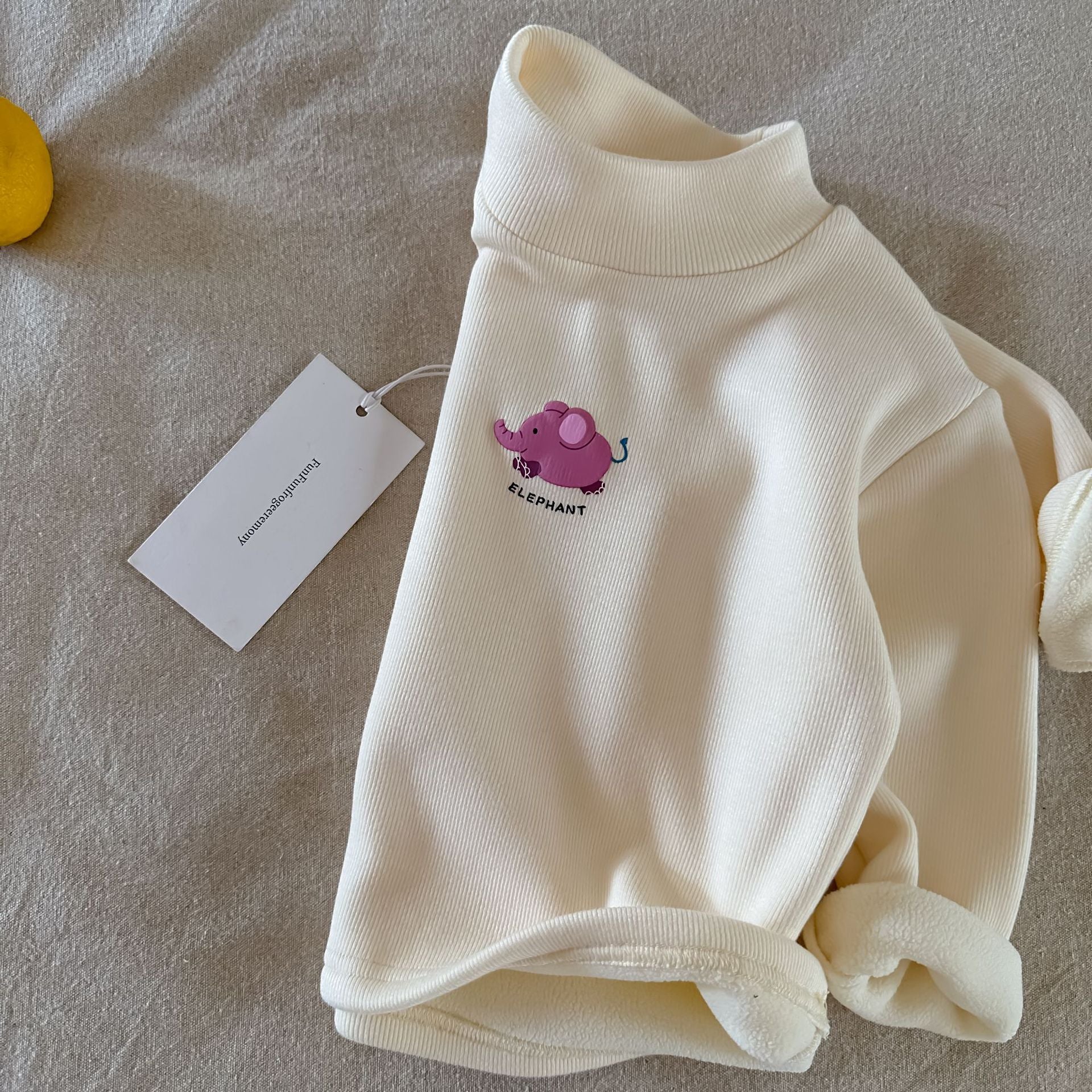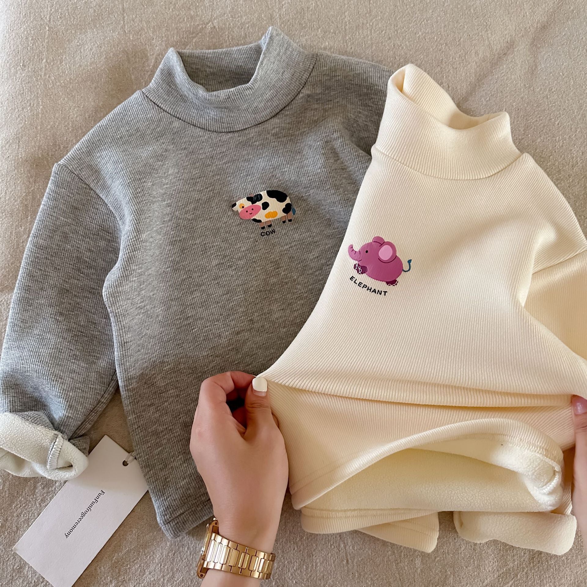 CA25112710兒童加絨打底衫秋冬新款男童長袖T恤卡通小熊半高領寶寶保暖潮