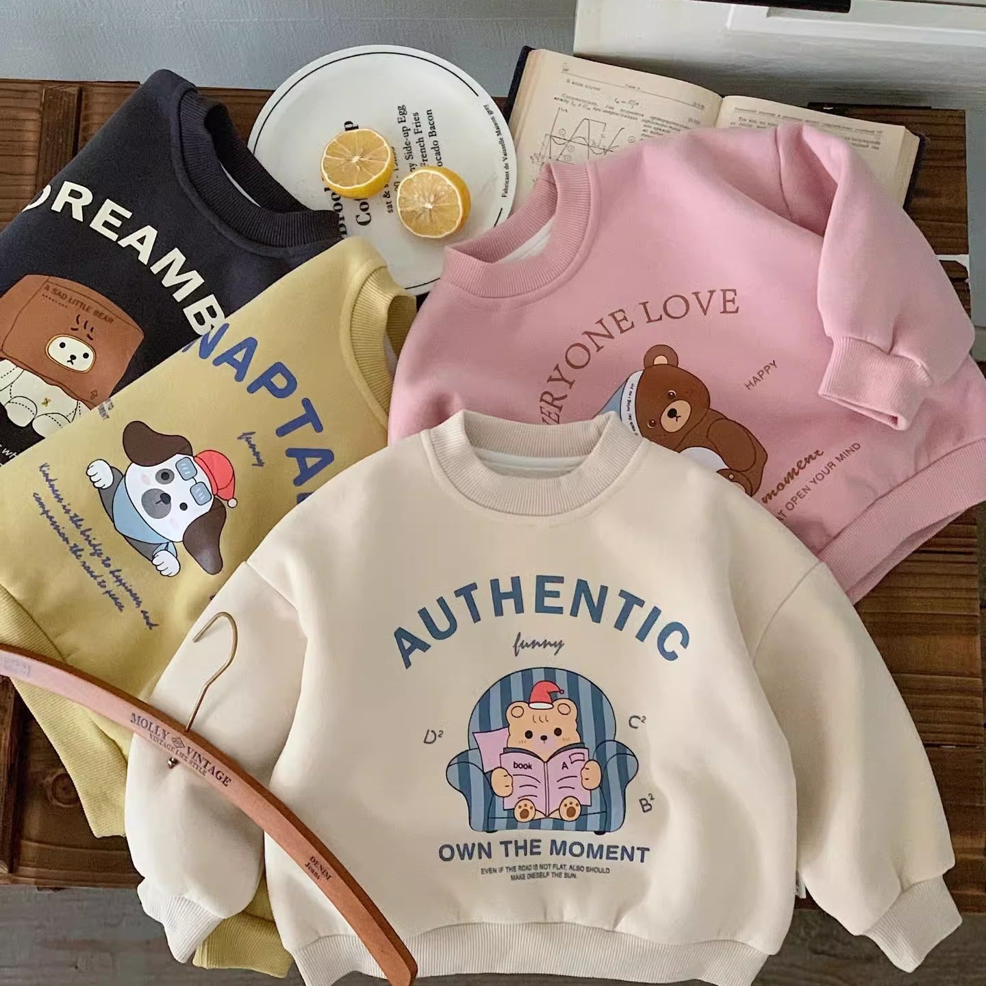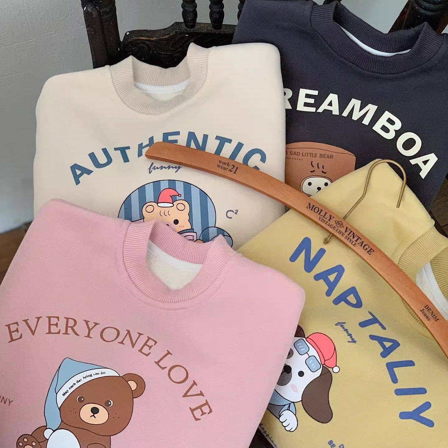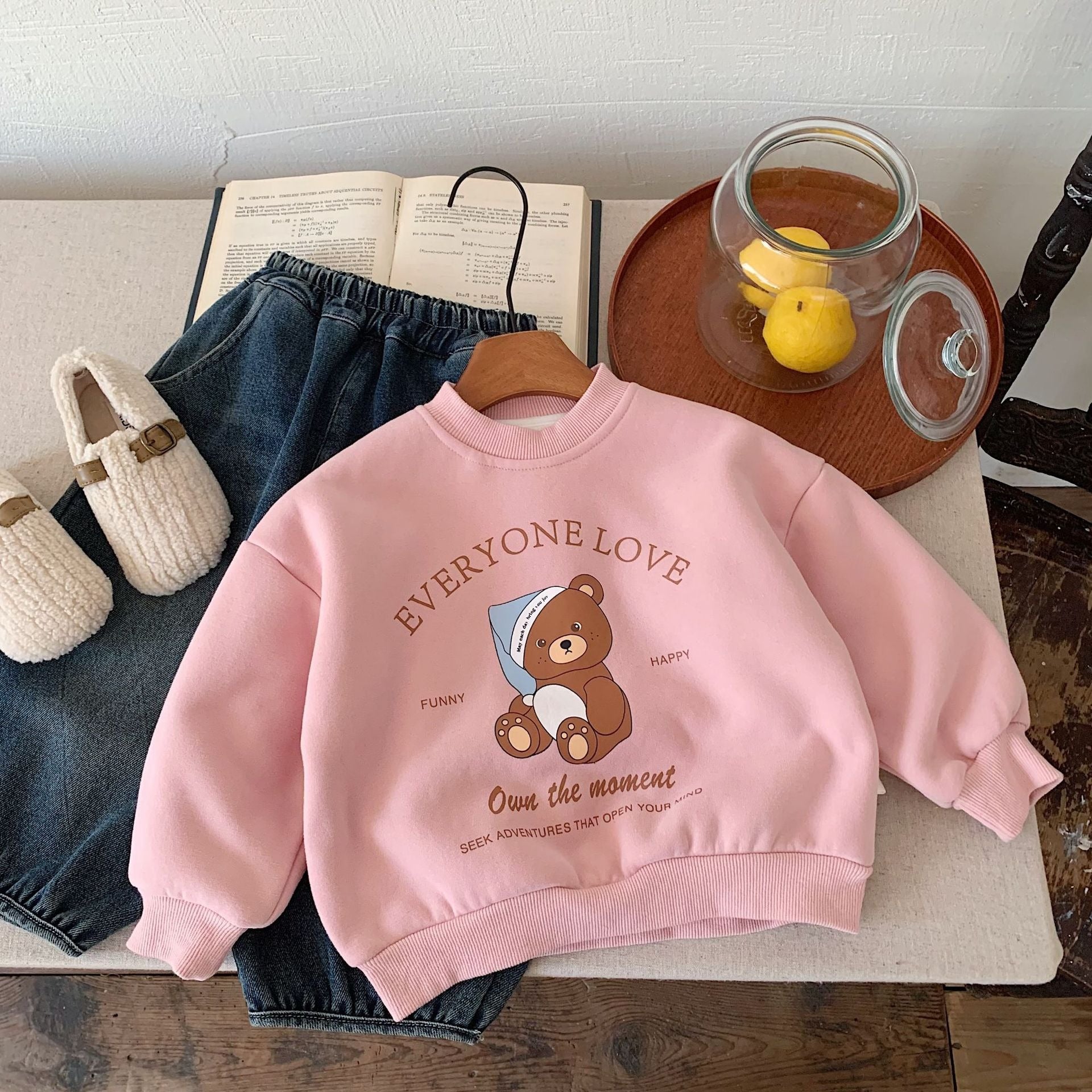 CA25112711兒童加絨衛衣男女童外套卡通印花套頭打底衫加絨加厚上衣潮一體絨