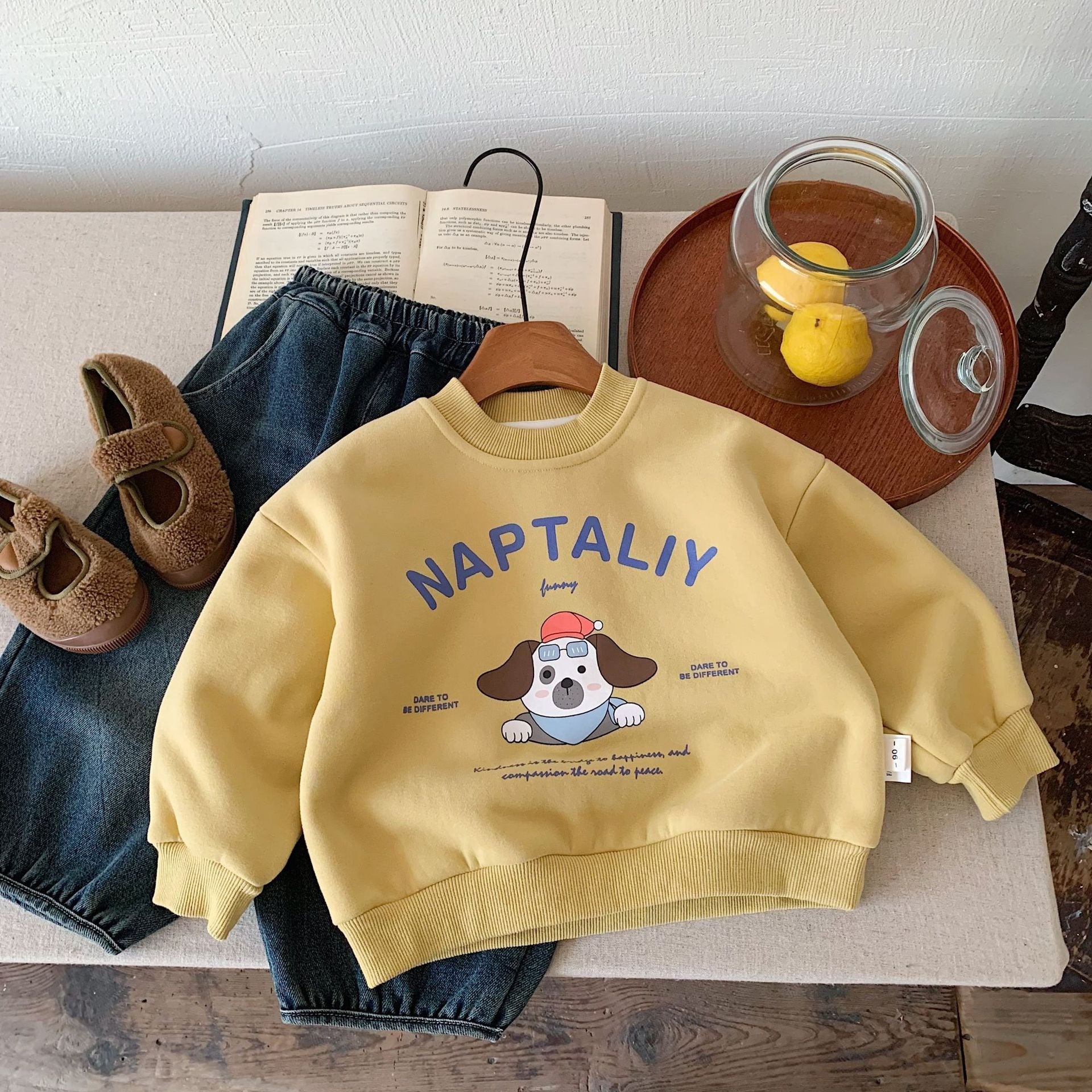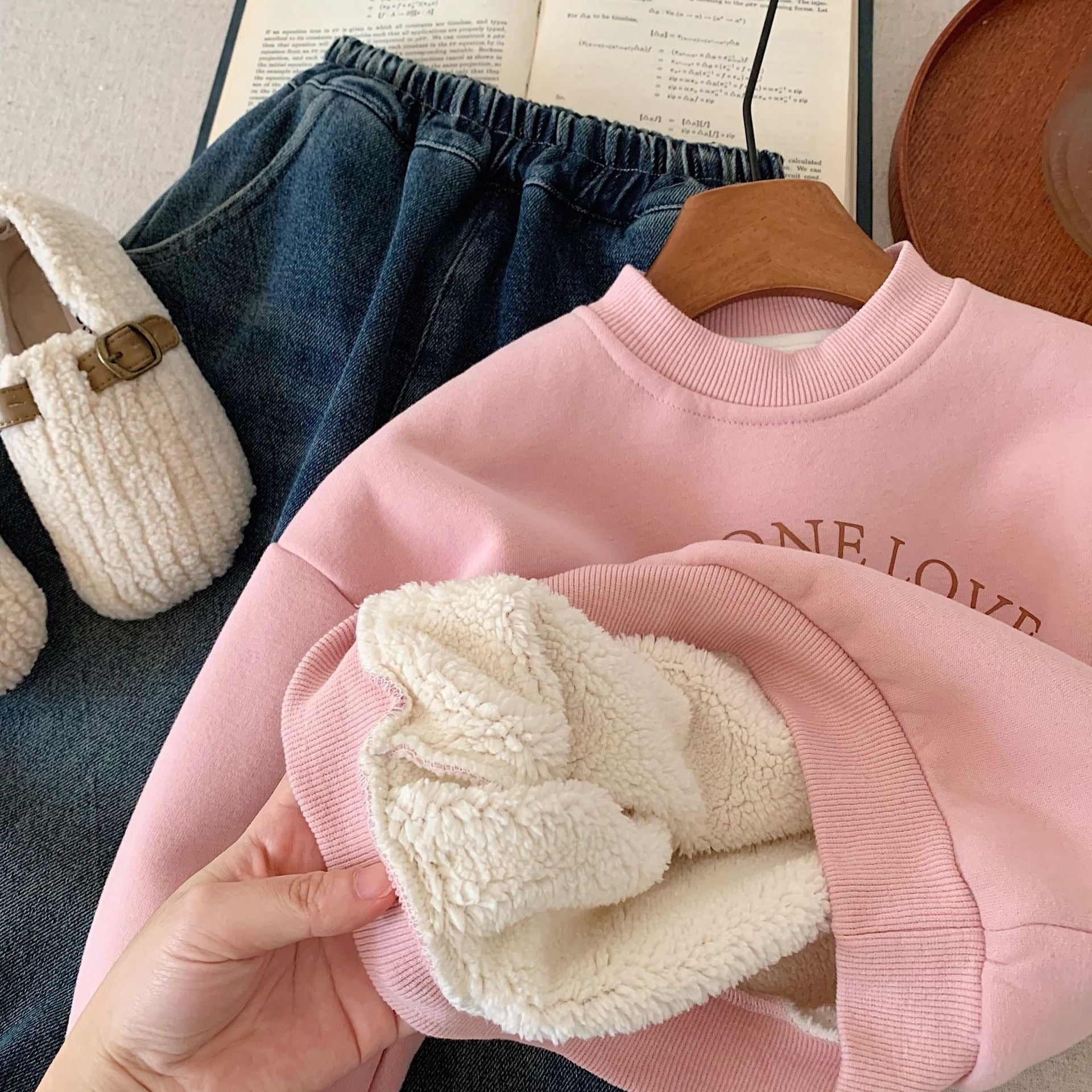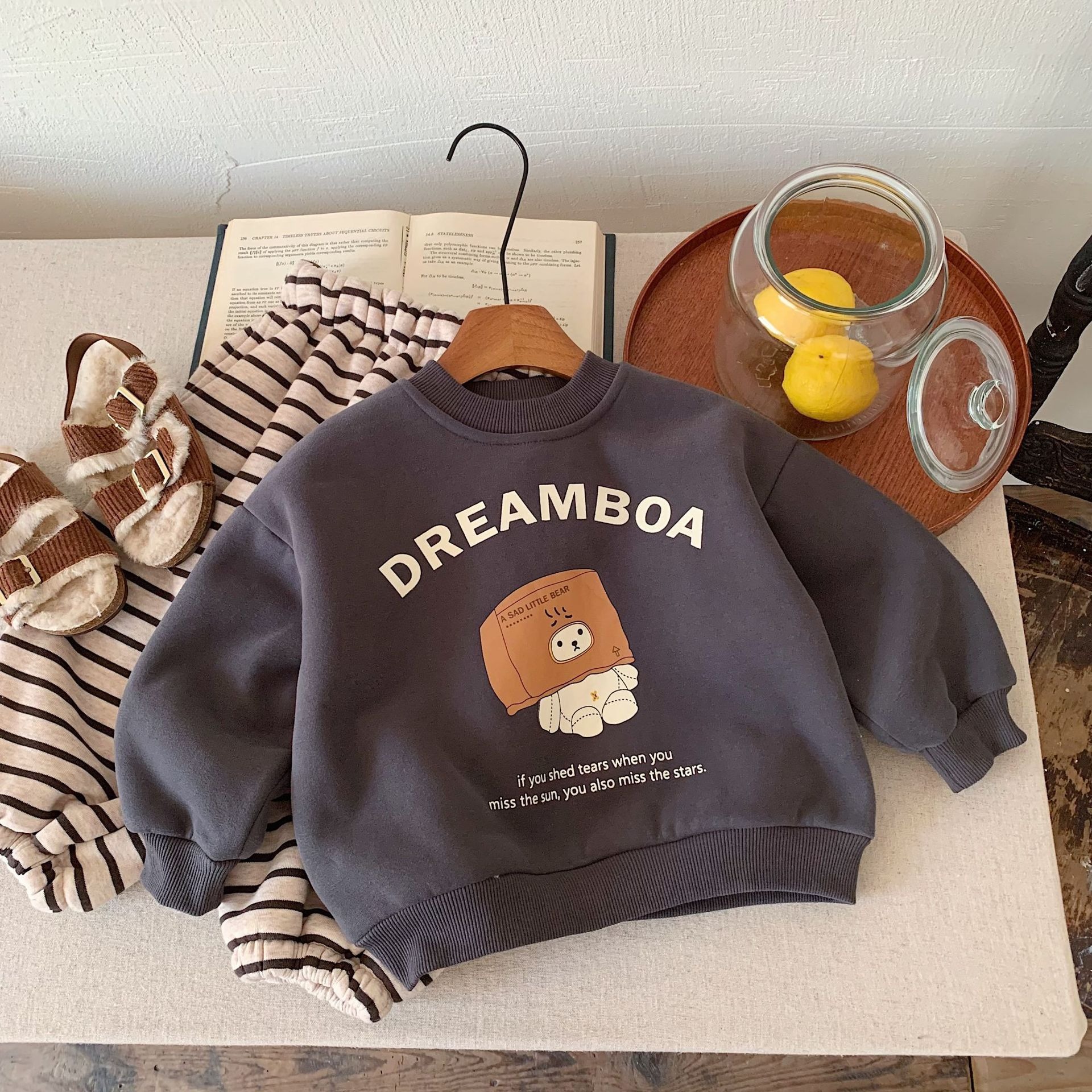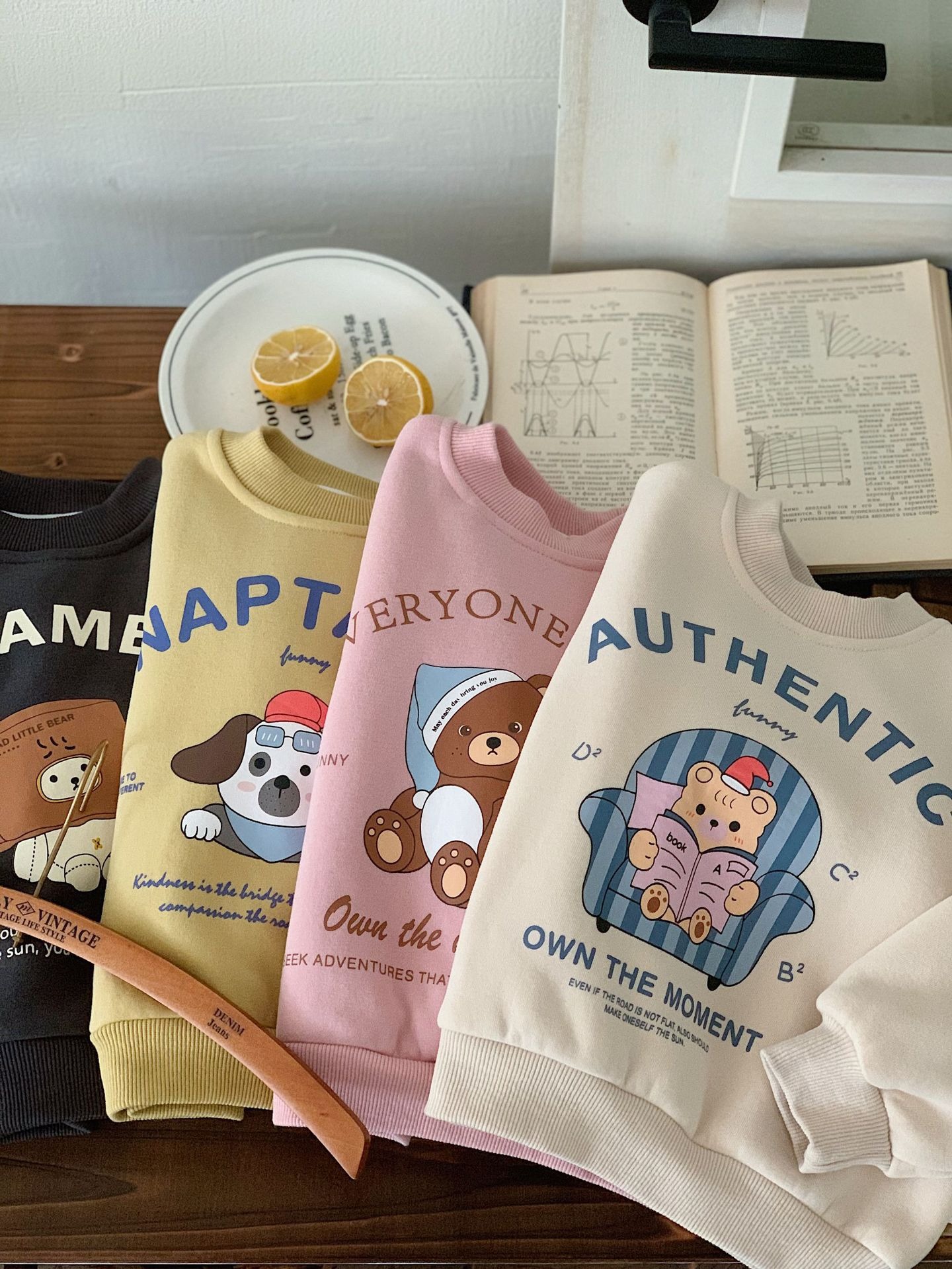 CA25112711兒童加絨衛衣男女童外套卡通印花套頭打底衫加絨加厚上衣潮一體絨