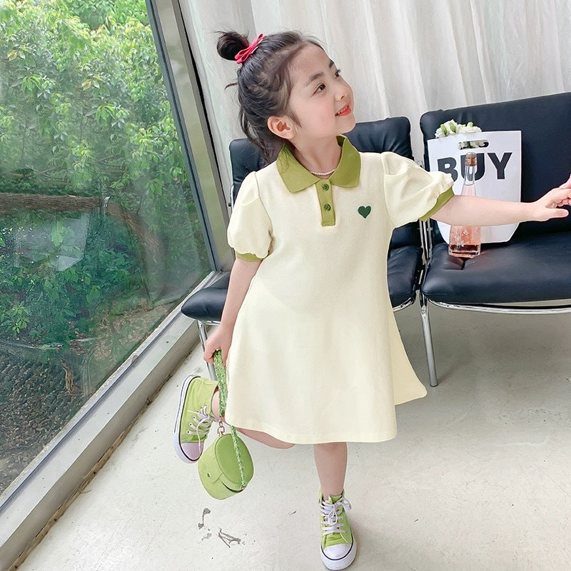 CD25050301女童公主洋裝夏季女孩洋氣洋裝POLO純色洋裝新款韓版A字裙短袖
