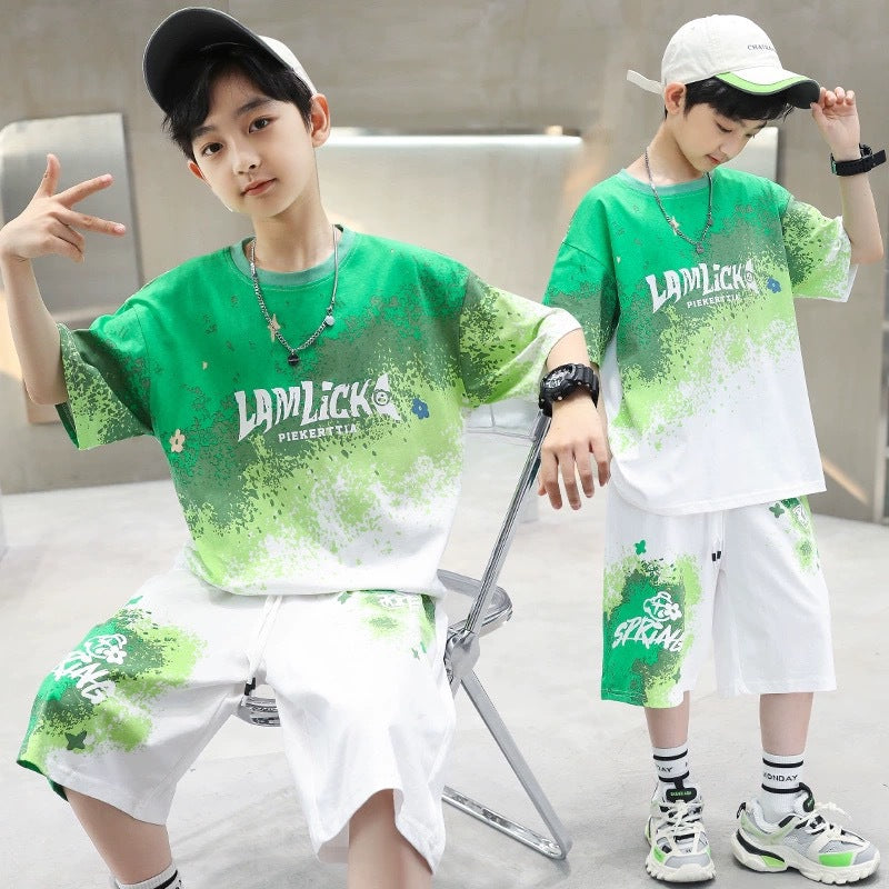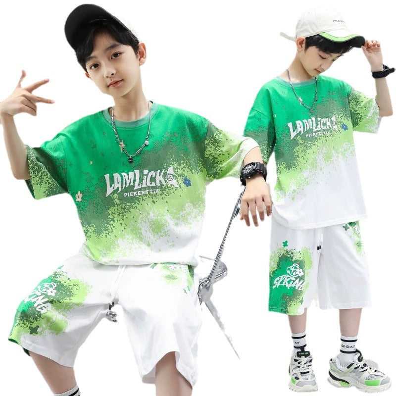 CD25050303男童夏裝短袖套裝2025全新中大童漸層運動套裝輕盈清新透氣速乾衣