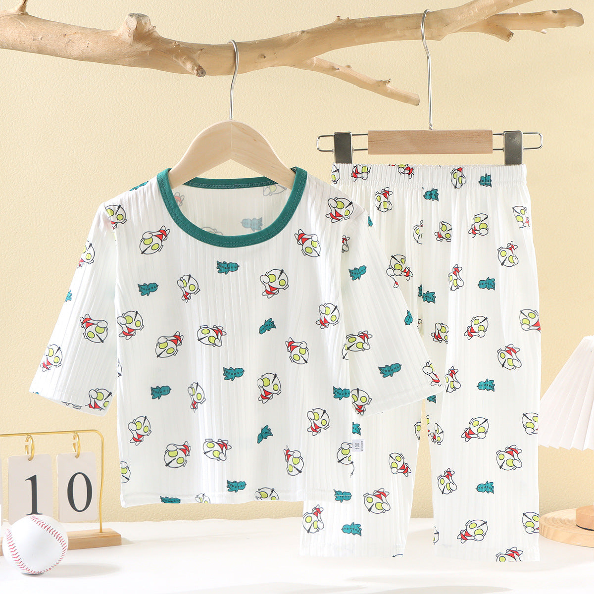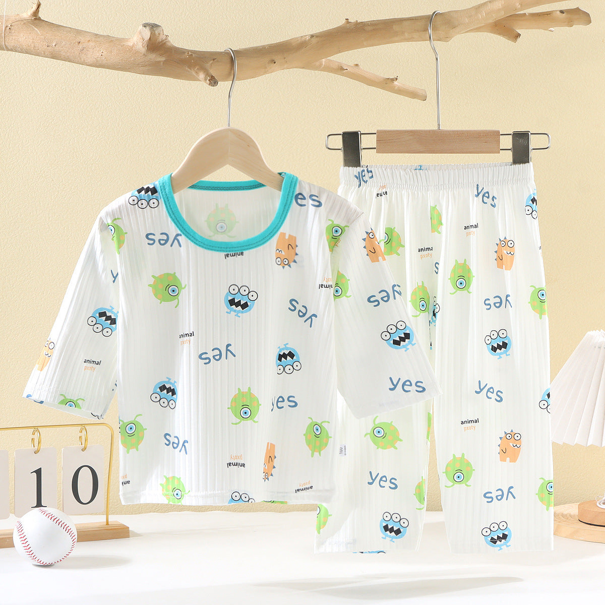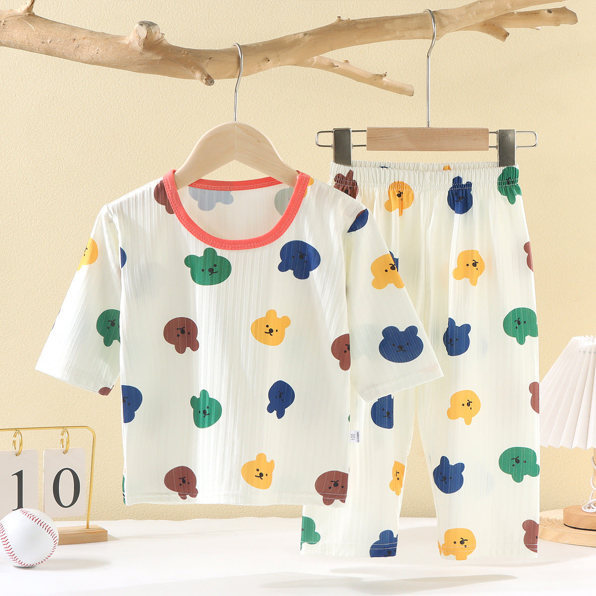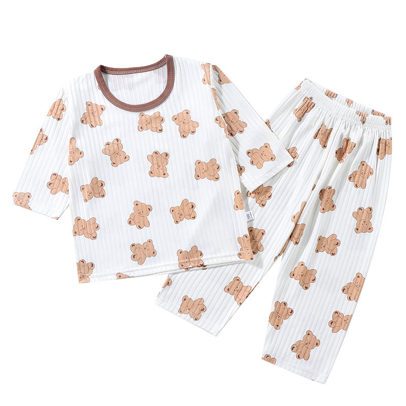 CD25050309兒童夏款空調服男女童夏季薄款透氣睡衣套裝寶寶七分袖家居服批發