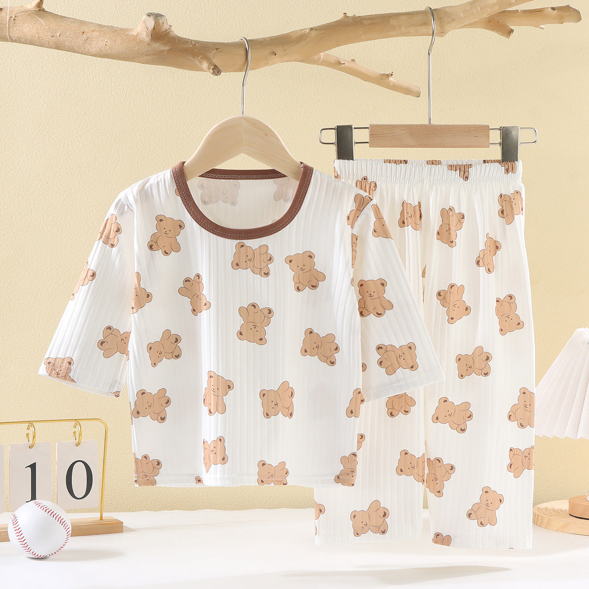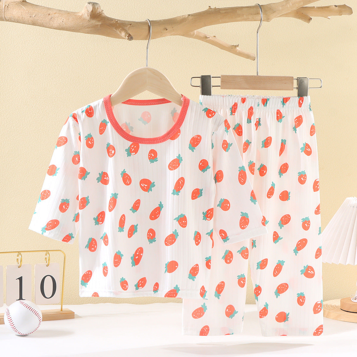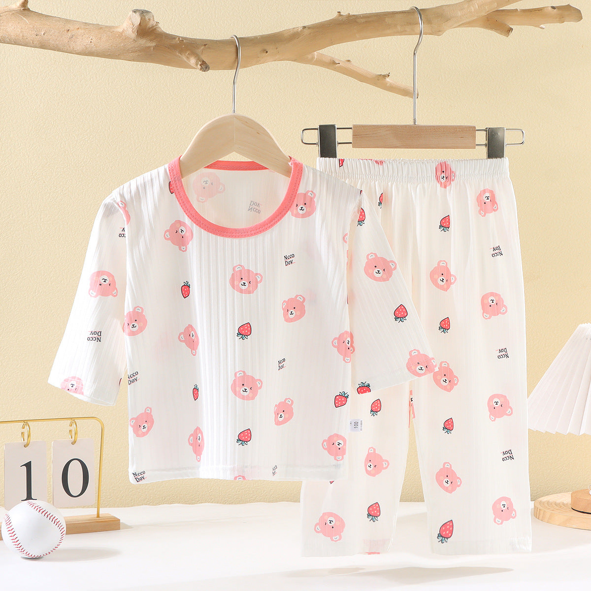 CD25050309兒童夏款空調服男女童夏季薄款透氣睡衣套裝寶寶七分袖家居服批發