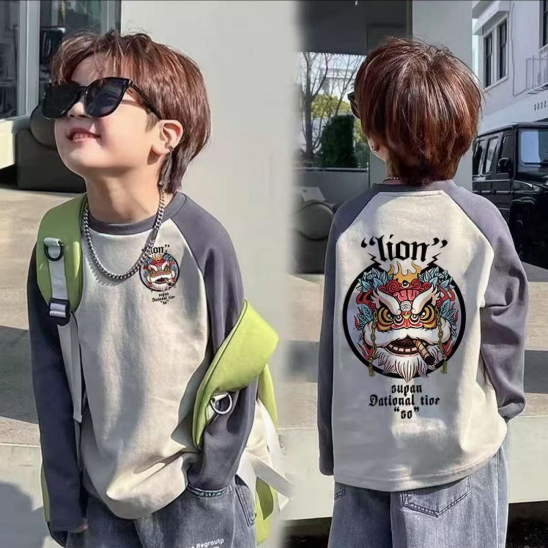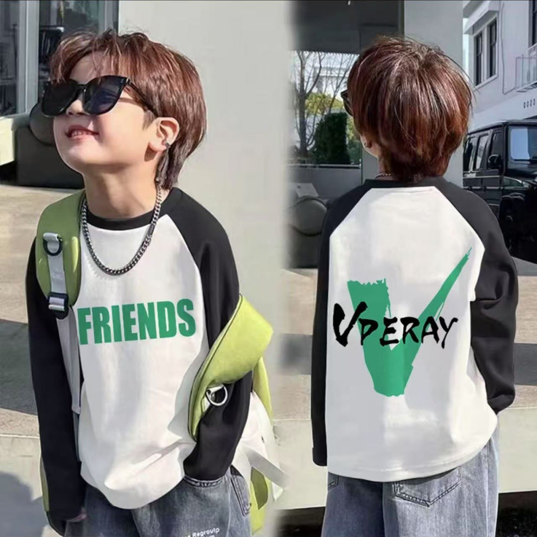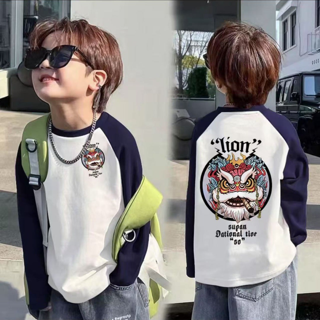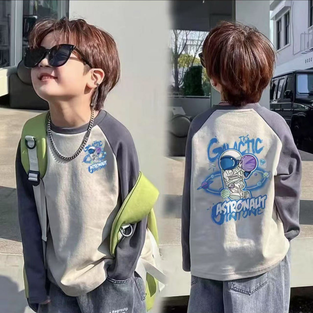 CE25091906男童長袖兒童T恤春秋裝新款大童春秋純棉打底成型帥氣上衣