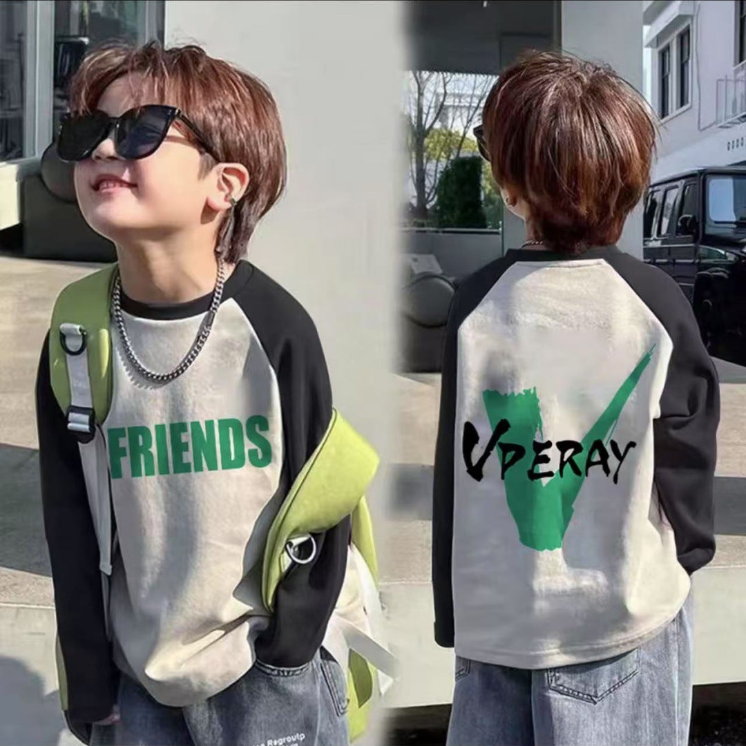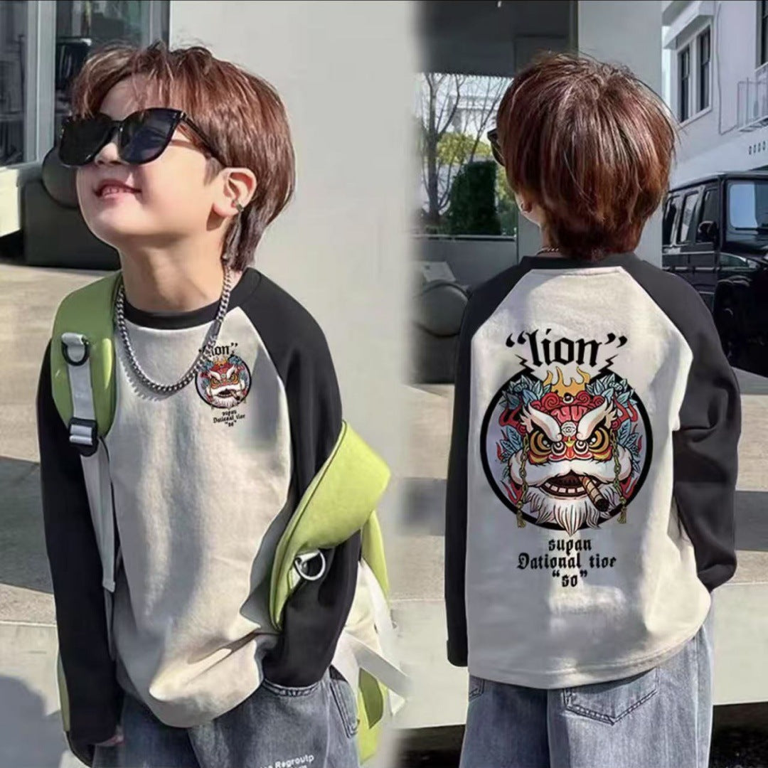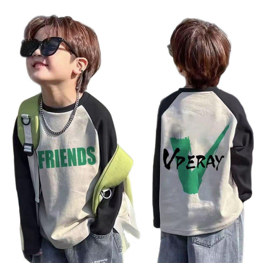 CE25091906男童長袖兒童T恤春秋裝新款大童春秋純棉打底成型帥氣上衣