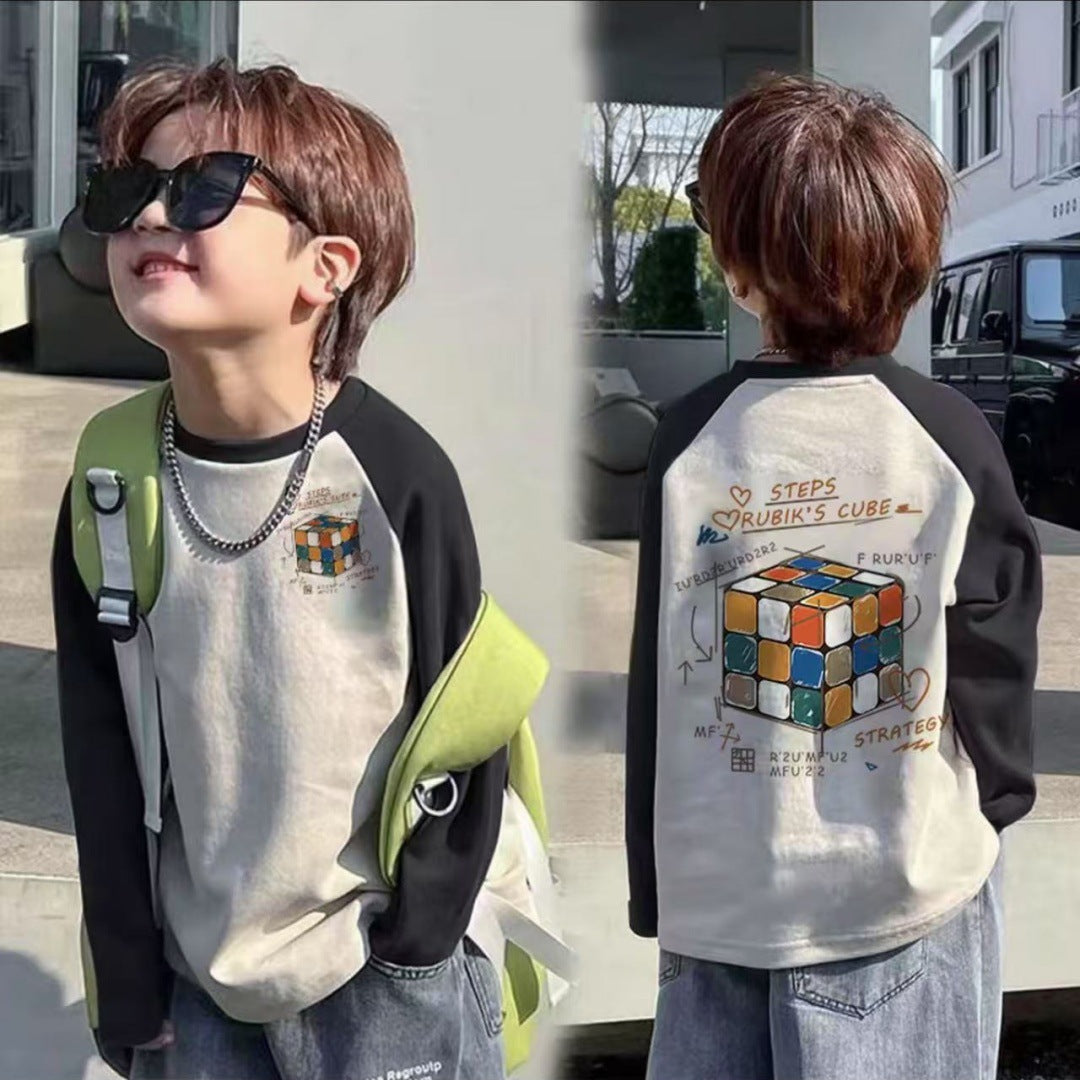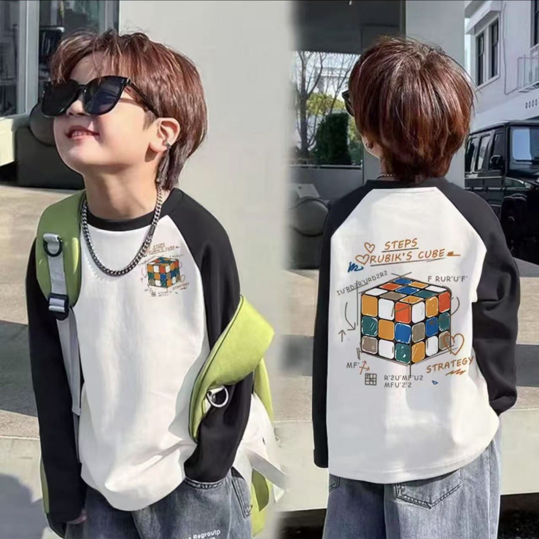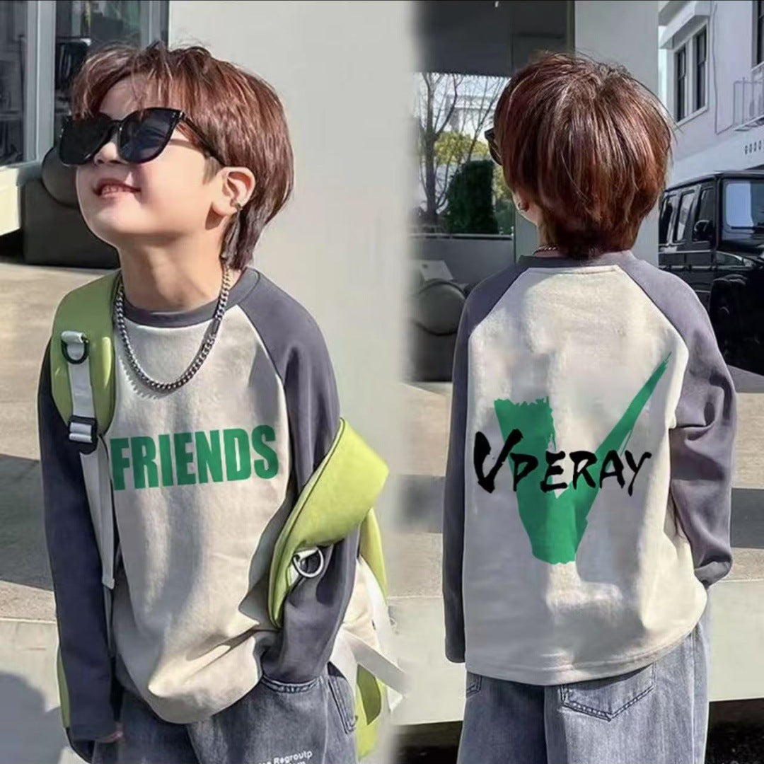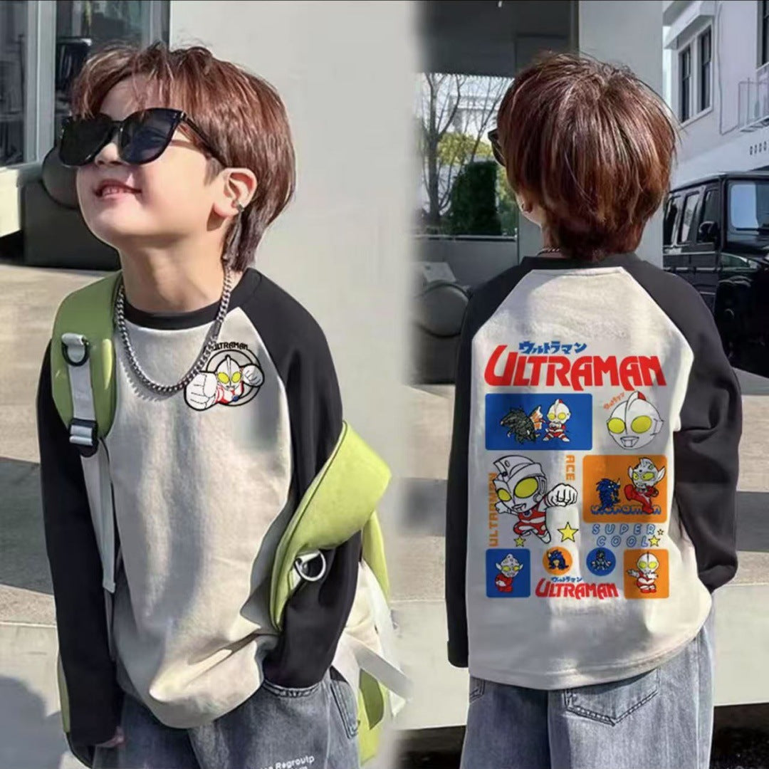 CE25091906男童長袖兒童T恤春秋裝新款大童春秋純棉打底成型帥氣上衣