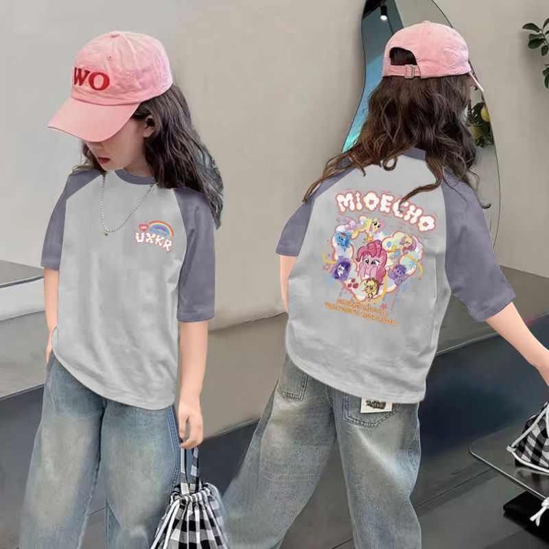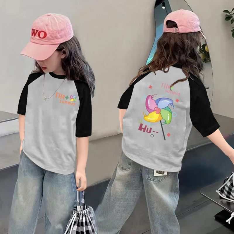 CE26022616女童夏季短袖T恤纯棉2026新款儿童洋气半袖女孩夏装薄款体恤上衣t