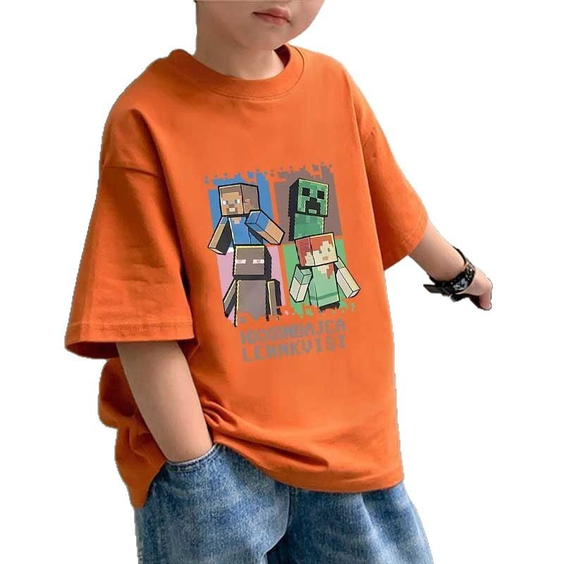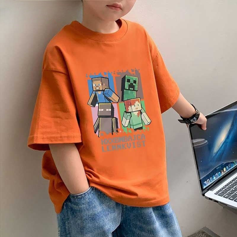 CE26022608男童裝純棉兒童T恤短袖夏季我的世界印花中大童上衣潮