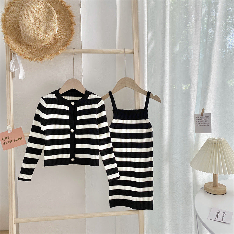 CF25091911女童針織兒童毛衣吊帶裙套裝時尚開襟裙秋季韓版童裝潮