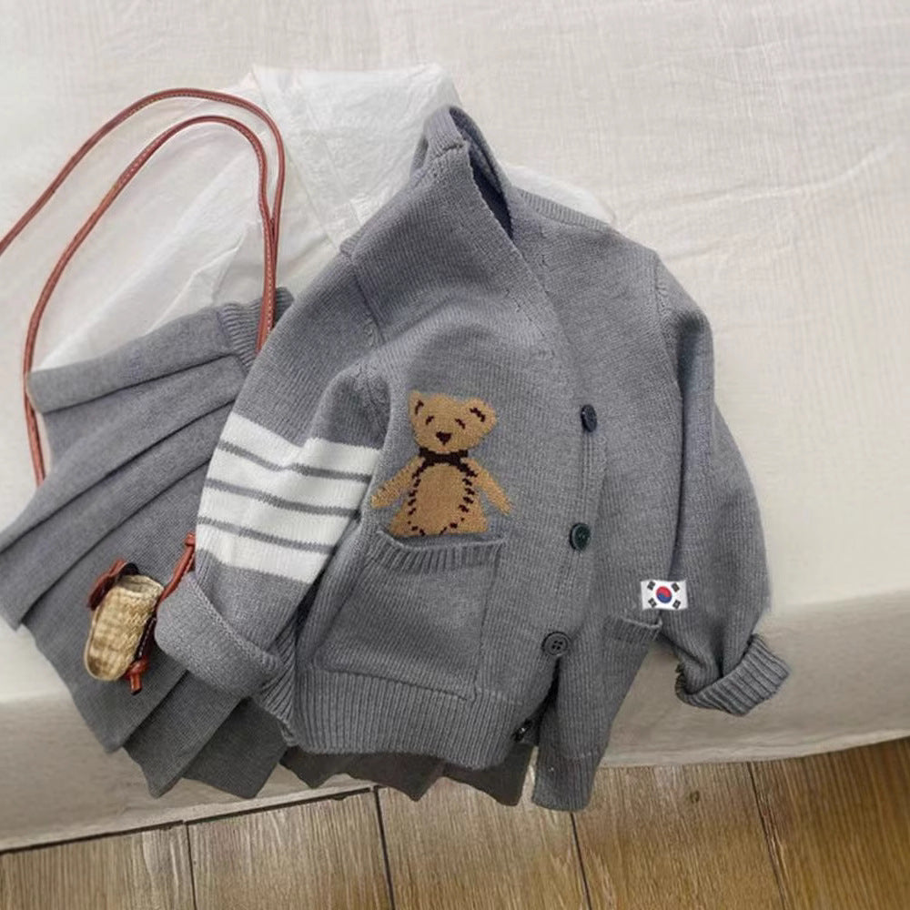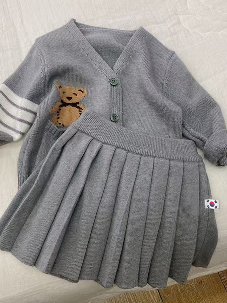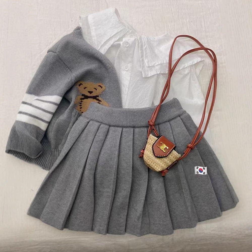 CF25091915童裝秋季套裝新款女童兒童學院風毛衣開襟衫洋氣裙針織歲寶寶