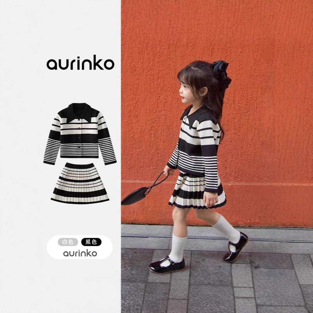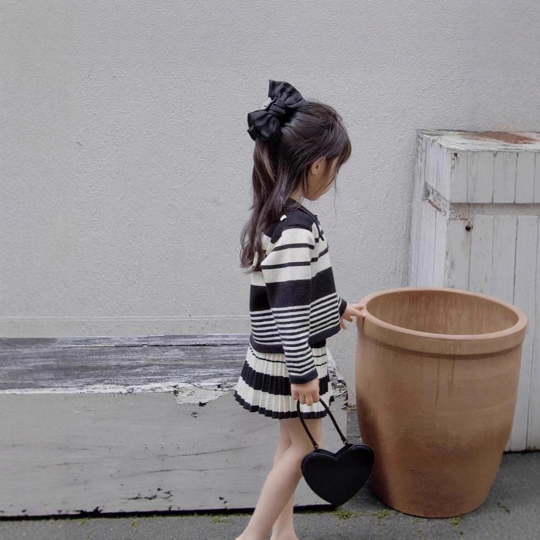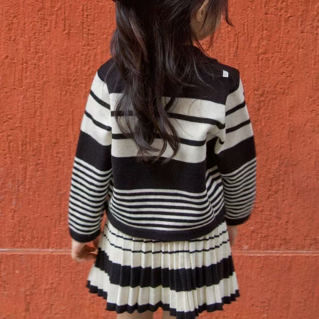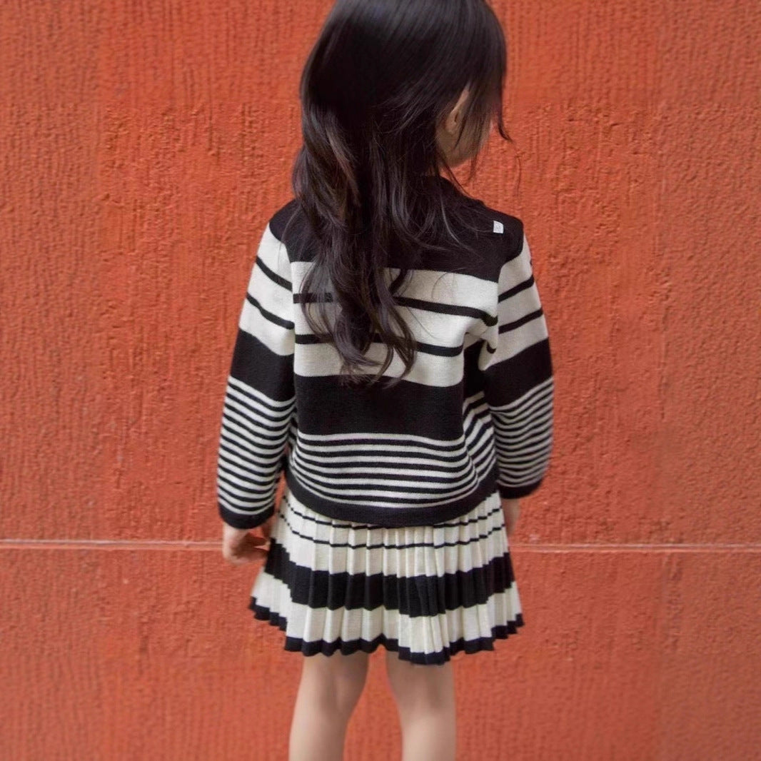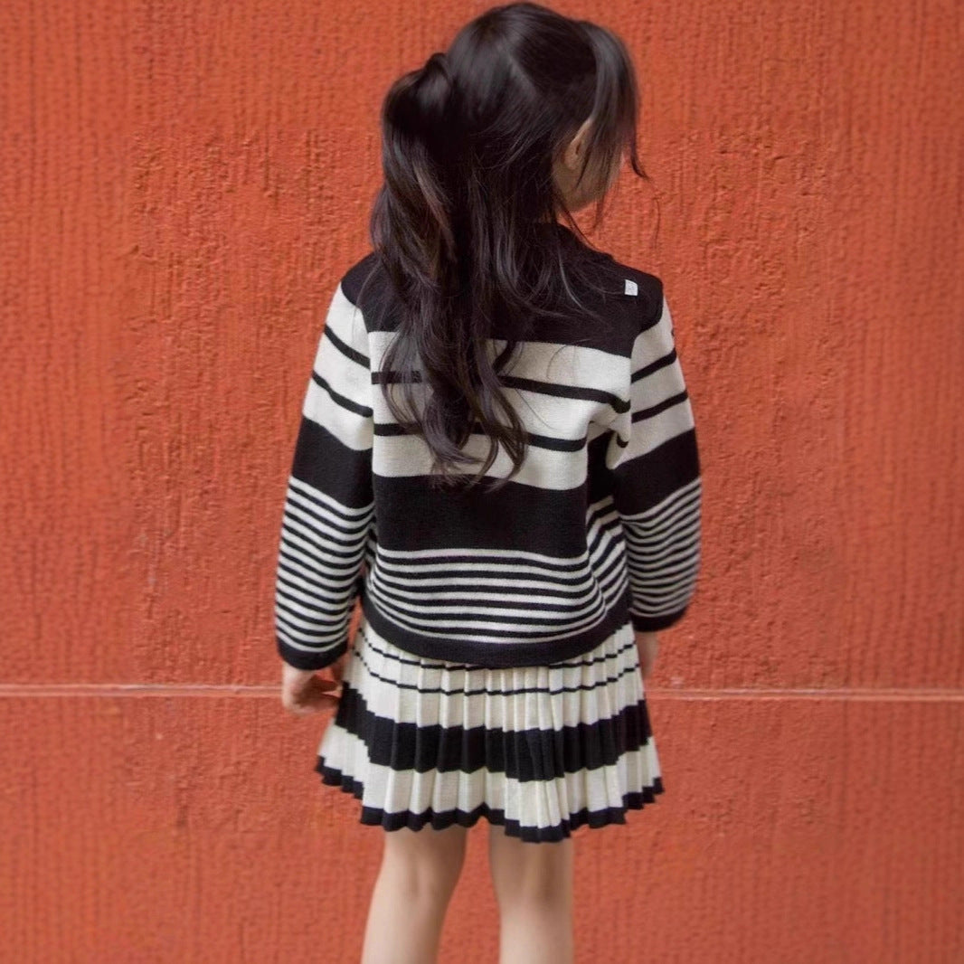 CF25091918女童半身裙套裝-柔軟學院百褶裙兩件春秋上衣外搭針織衫洋氣
