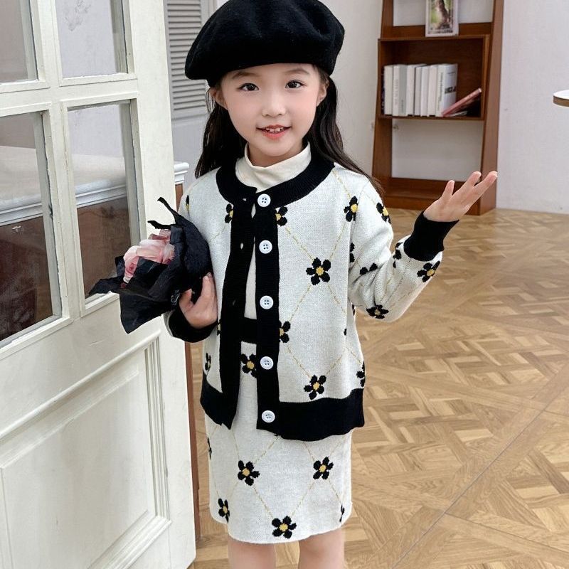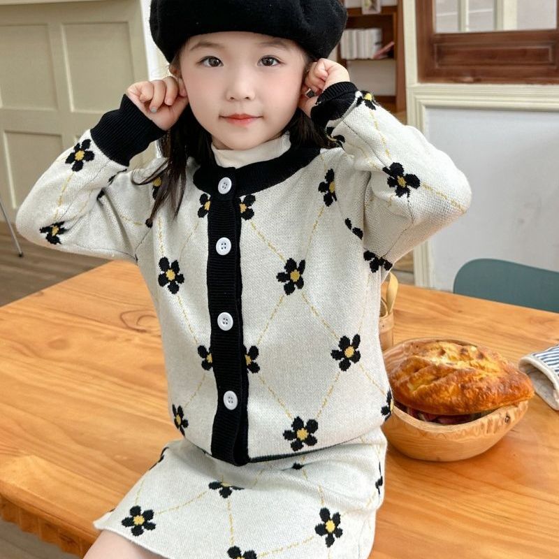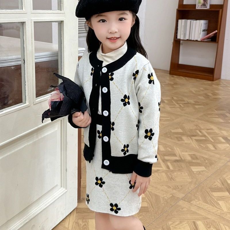 CF25091921兒童女童春秋2024套針織毛衣韓版運動開襟裙半身裙潮童裝寶寶