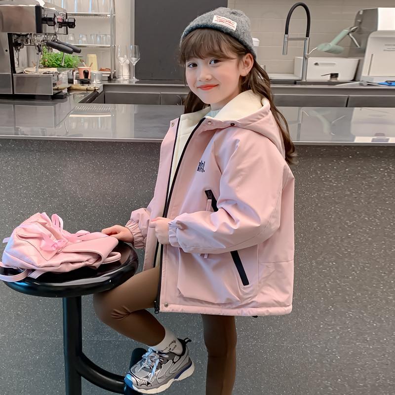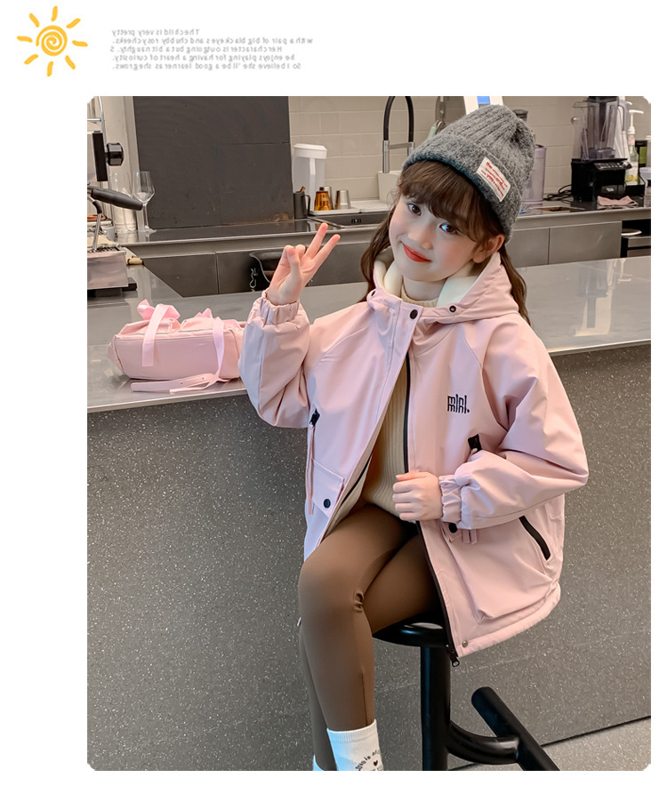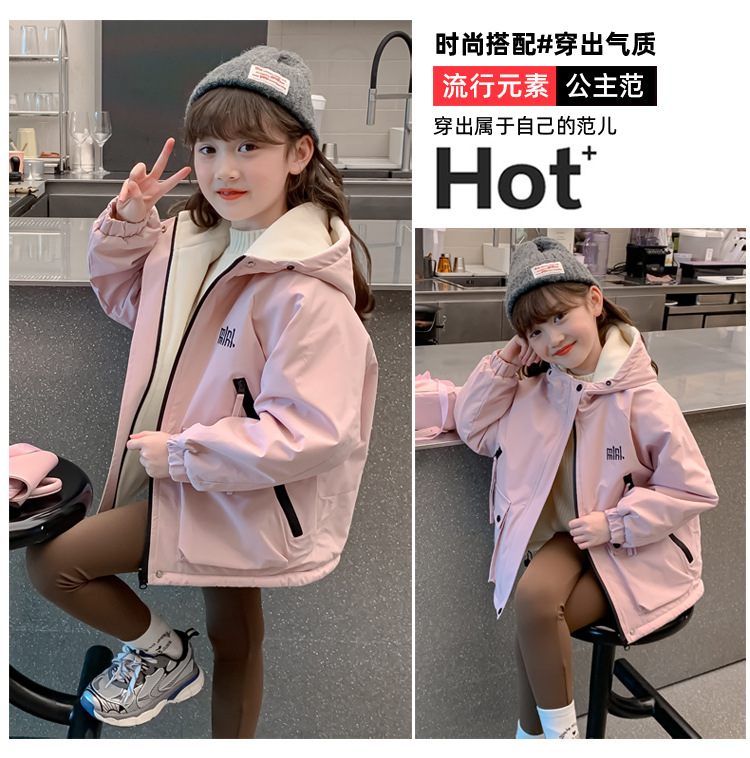 CH25110524女童秋裝裙兒童洋氣女孩秋冬兩面穿加絨加厚字母衝鋒衣