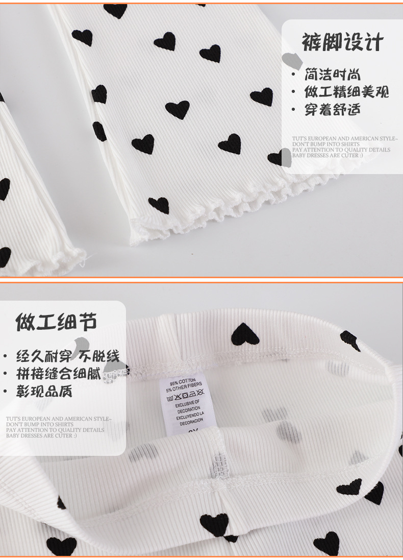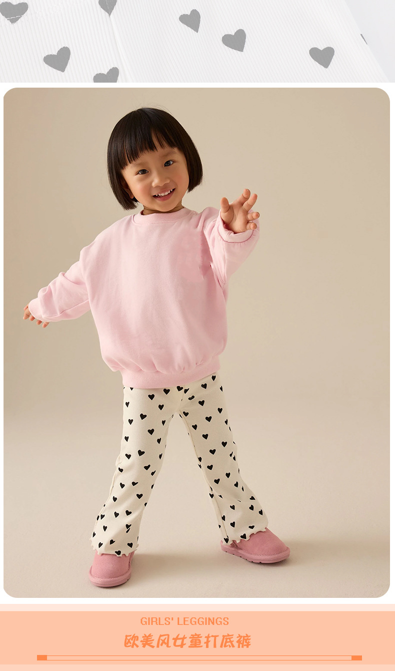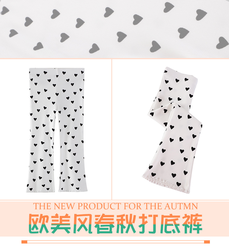 25款秋季新款中小童宝宝阔腿打底裤女童外穿喇叭腿爱心图案长裤 女童打底裤一件分销