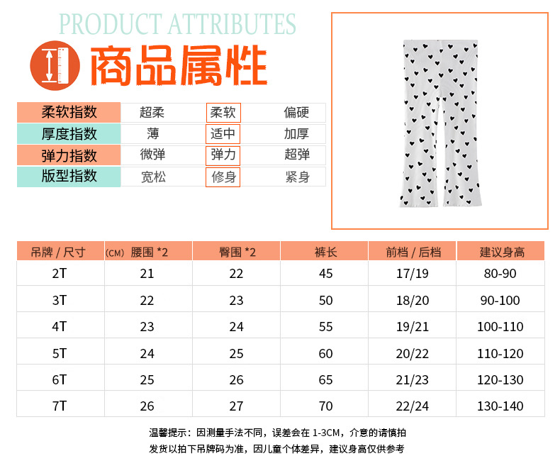 E26040823秋季新款中小童寶寶闊腿緊身褲女童外穿喇叭腿愛心圖案長褲
