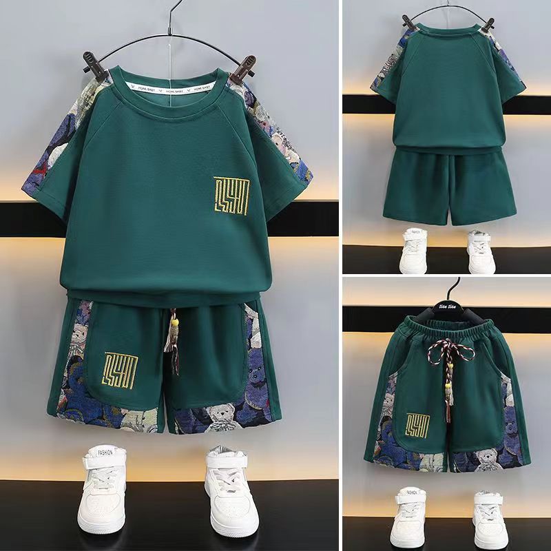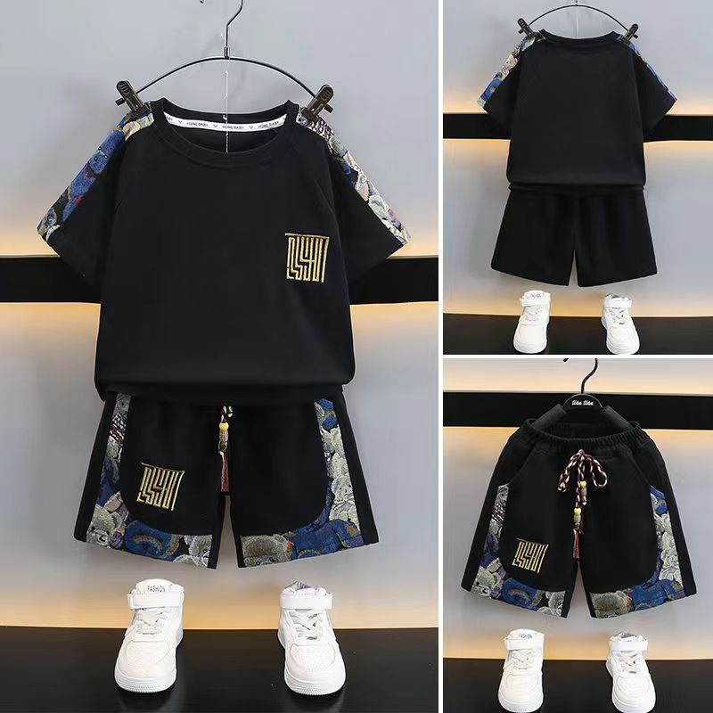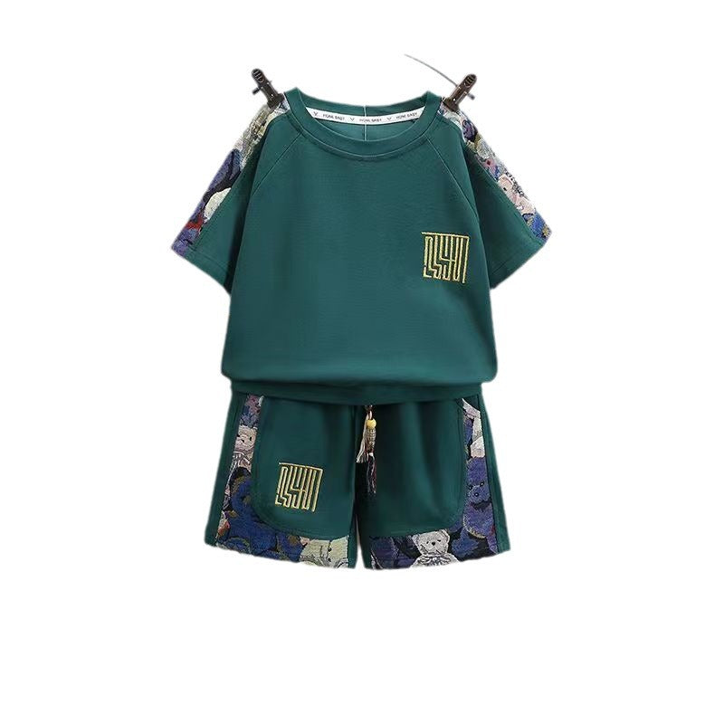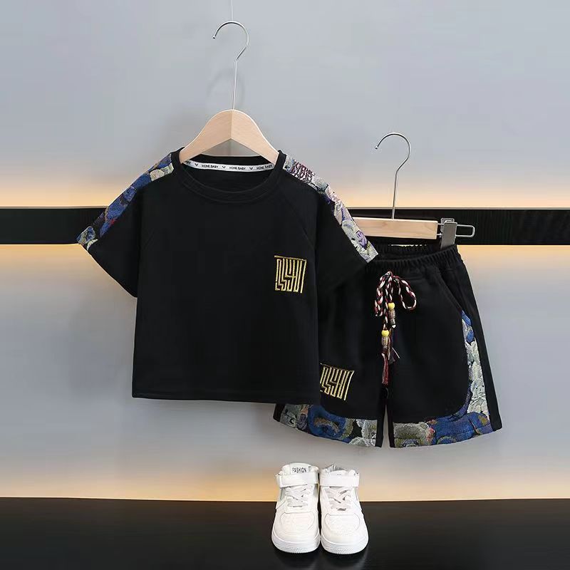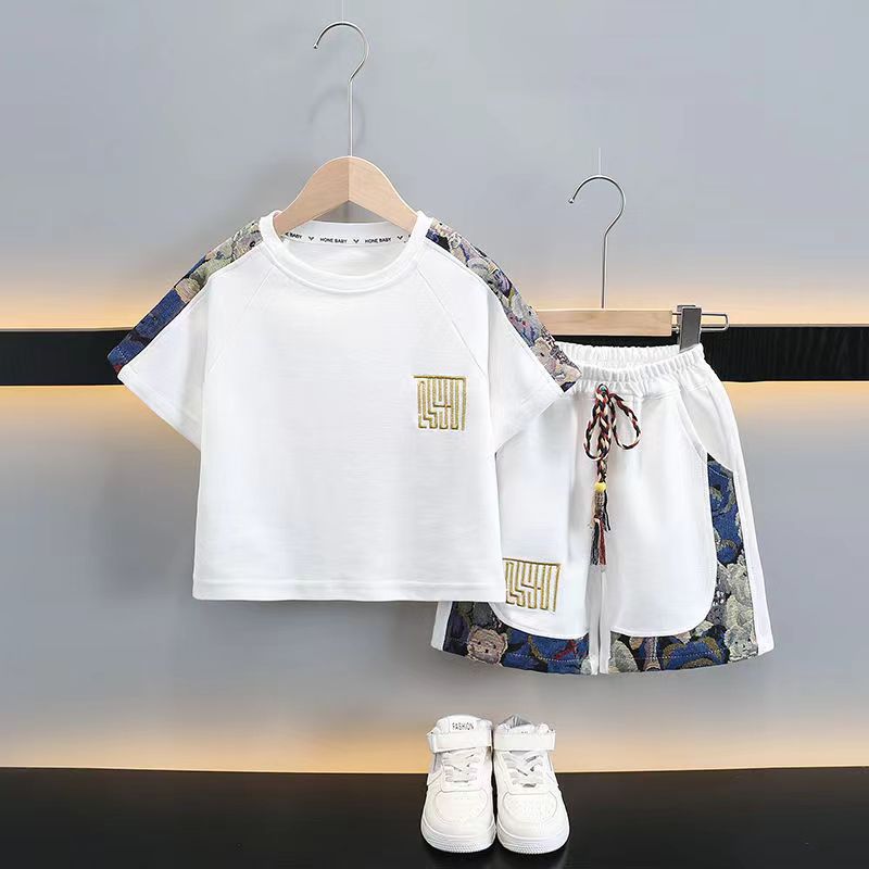 FB24070102兒童夏裝套裝男2024新男童休閒運動兩件寶寶炸街短袖國風童裝