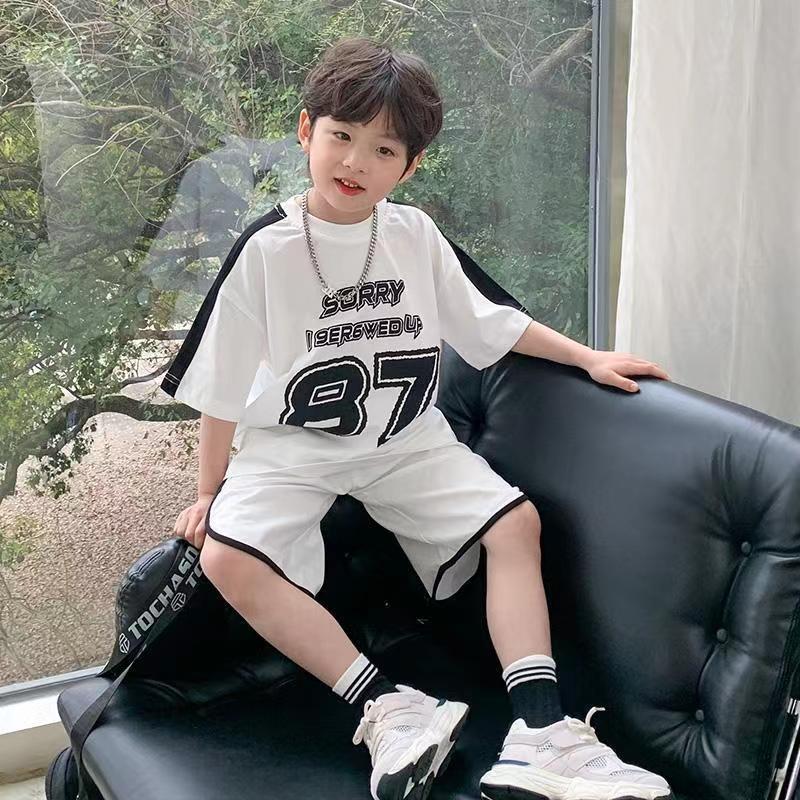 FB24070108男童夏季套裝2024新兒童裝夏裝寶寶運動網紅男孩韓版爆街兩件套